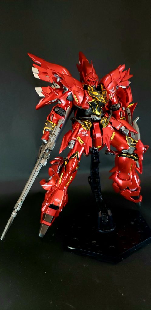 ![元々はサイコフレームをメインフレームに据えたMSの、一般パイロットの操縦では計測不可能な限界値を取得するべく、機械上での試験運用を目的とした実験機で、驚異的な機動力と追従性を誇るも、発生する加速度(G負荷)によるパイロットへの肉体的負荷は殺人的なレベル[注釈 5]で、なおかつインテンション・オートマチック・システム制御のサイコミュによる精神的負荷もあるため、並のパイロットにはまず乗りこなせない“極めて端的な[12]”MSであったとされている。その限界値を突き詰めた設計ゆえ、人間が乗り込む機動兵器としては欠陥機とも言えるMSであったが、実際には人を超えた「ある者」に向けて造られていたとされる[13]。強奪に偽装した譲渡という形でネオ・ジオン残党軍「袖付き」の手に渡り、「赤い彗星の再来」と渾名され、ニュータイプとしてもMSパイロットとしても高い能力を誇るフロンタルが操縦することで、あくまで理論上であったそのポテンシャルを、作中の戦闘にて遺憾なく発揮することとなった[14]。](https://gumpla.jp/wp-content/uploads/2020/08/20200829_220344-498x1024.jpg)