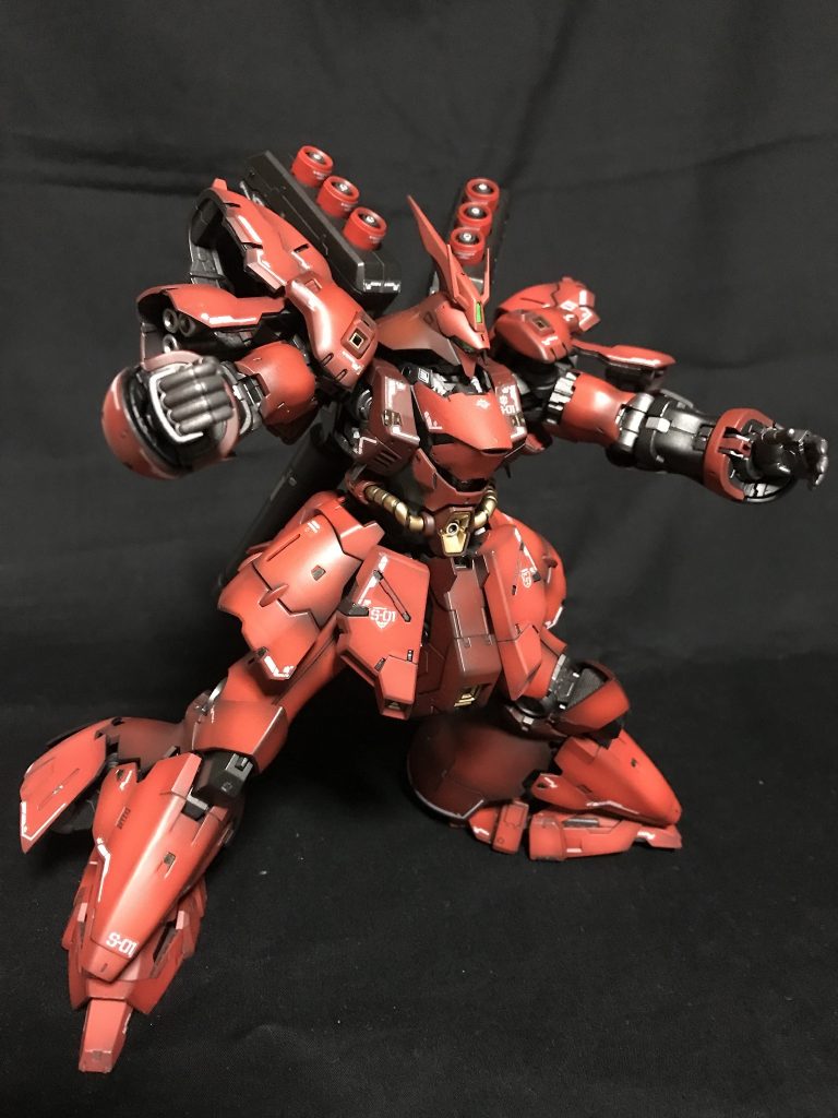 コメント失礼します。黒立ち上げのササビー、重厚感がupしてとてもカッコイイです👍自分もRGのササビー作ってますが、黒立ち上げで塗装しようと思っていたので参考にさせてもらいます!