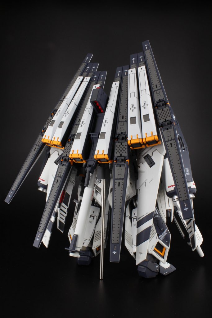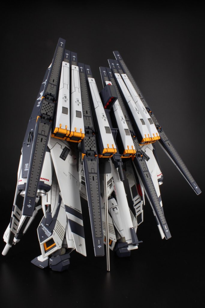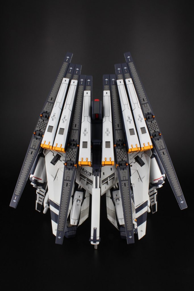 この装備だと、ファンネルやシールドが翼や胴体っぽくてモビルアーマー形態みたいですね。そこに顔だけが出てる感じが、どことなくデンドロビウム的にも見えます。