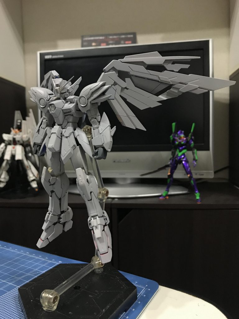 本体に関してはあまりいじったところはなく、への字スリットが太かったので捕捉したのと、足首が細すぎたので2ミリ幅まし、フロントアーマーにボリュームを持たせたくらいですしています