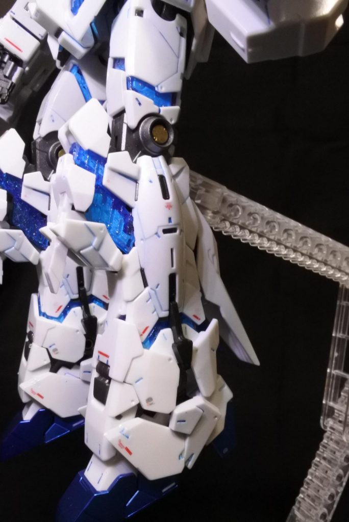 装甲のホワイトパール、角などのメタリックブルー、そしてサイコフレームの煌めきが伝わりやすい?一枚。