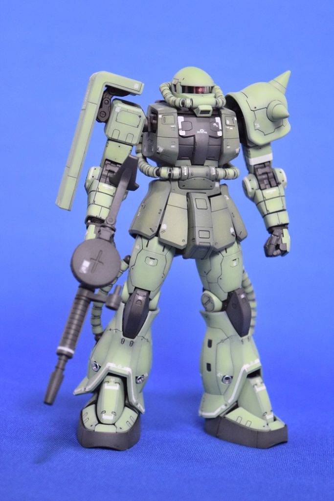 成形色を2種に分けて面の表現をしているRGシリーズなのですがザクの色分けを見ると少し違和感を感じたので色分けせずに通常のカラーバージョンで塗りました。