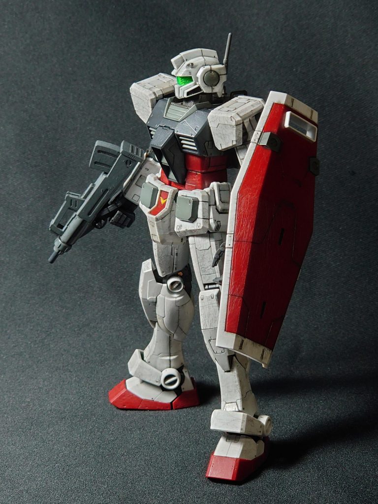 ガンダムのトリコロールカラーを、ジムらしくとテスト機らしくなるように、ブルーをダークグレー、イエローをグレーに変更してます。