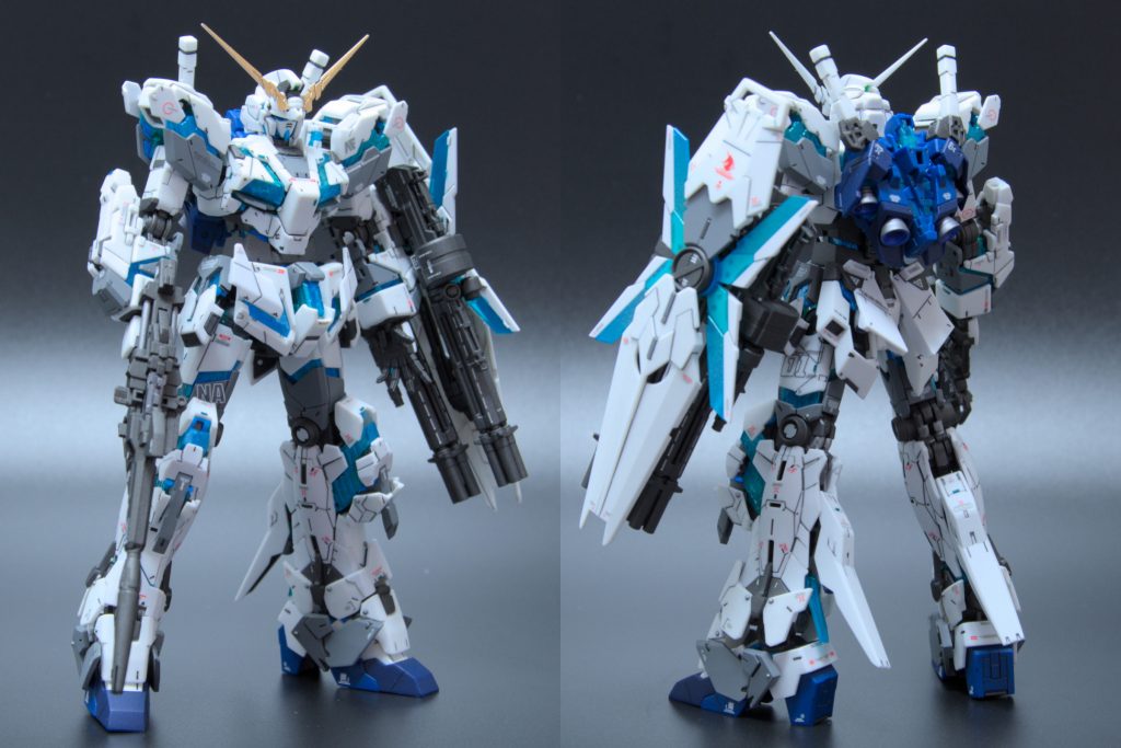 サイコフレームは成形色を残しつつメタリックグリーン、メタリックブルーでグラデーションをかけてみました。