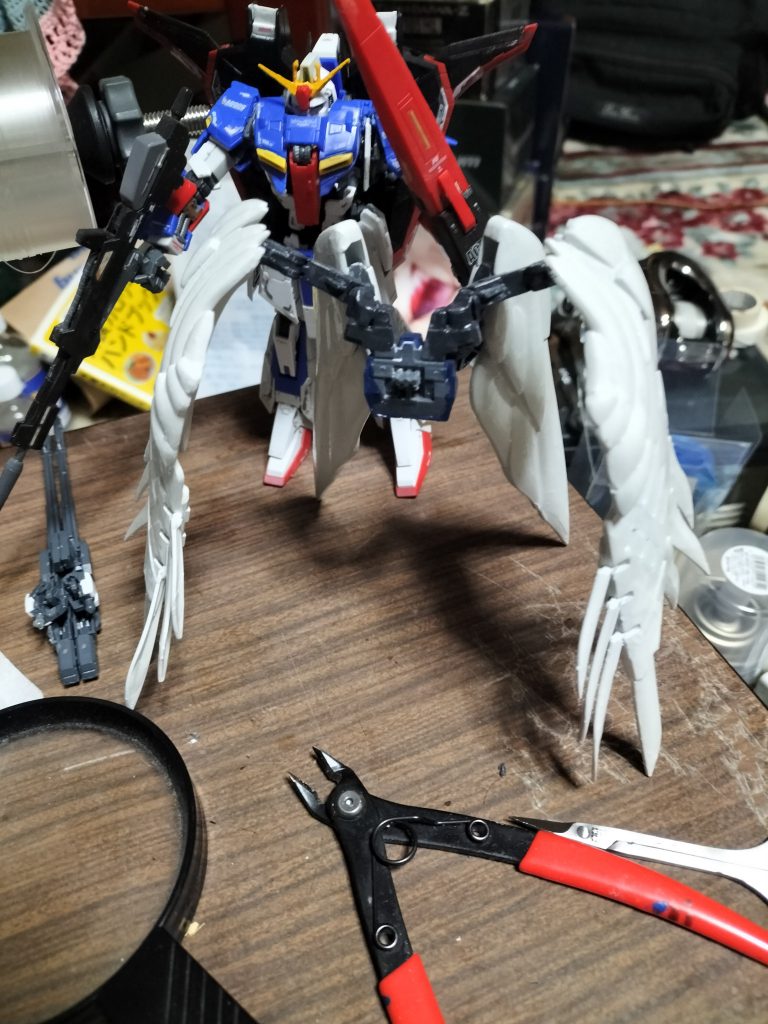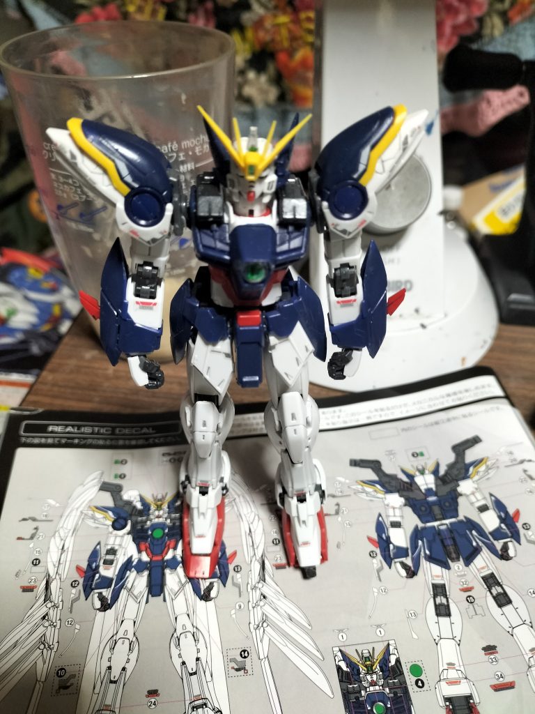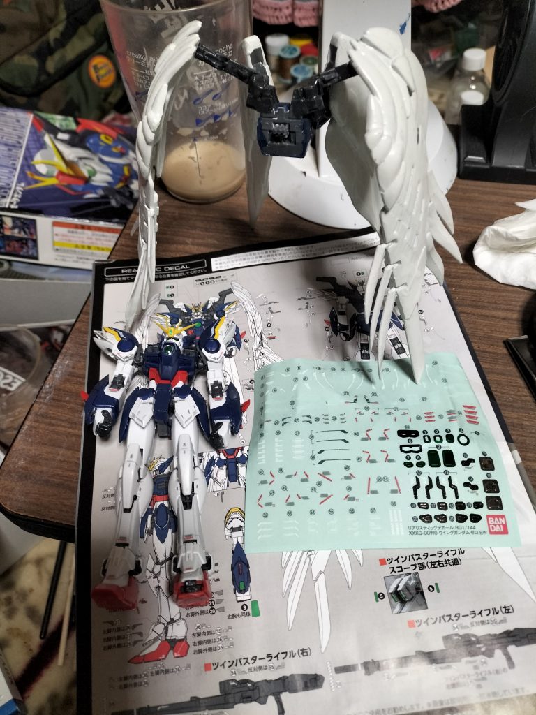 このウイング・ゼロは、ボクの過去作ですが、最近、部分塗装と、今日、デカール貼りを施しました。