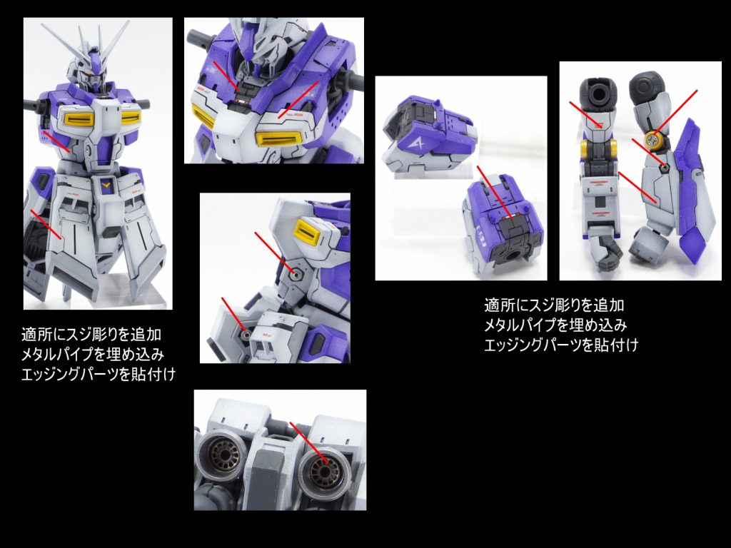適所にスジ彫りの追加とプラ板チップを埋め込みました。 グラデ…