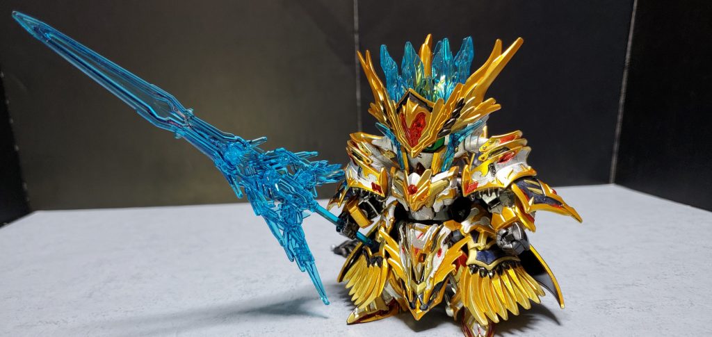 SDガンダムワールドヒーローズより、ナイトワールドの騎士王、アーサーガンダムMk-Ⅲです。ガンダムマーカーのメタリック系でほぼ全塗装しました。