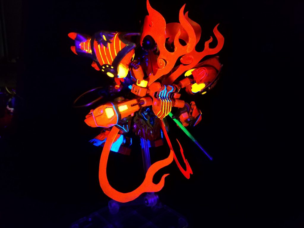 ガイアノーツの蛍光が滲み出てくる性質を利用すれば、もどきですが筆塗りでもグラデーションができました