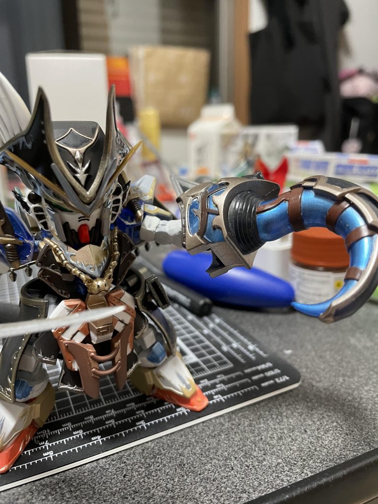 SDベンジャミンV 2をプロポーション改修と一部成形色活かしの水性ホビーカラーで塗装しました😆Gフレーム移植したり、塗り分けのマスキングだったり大変だったのですが、楽しく制作できました☺️