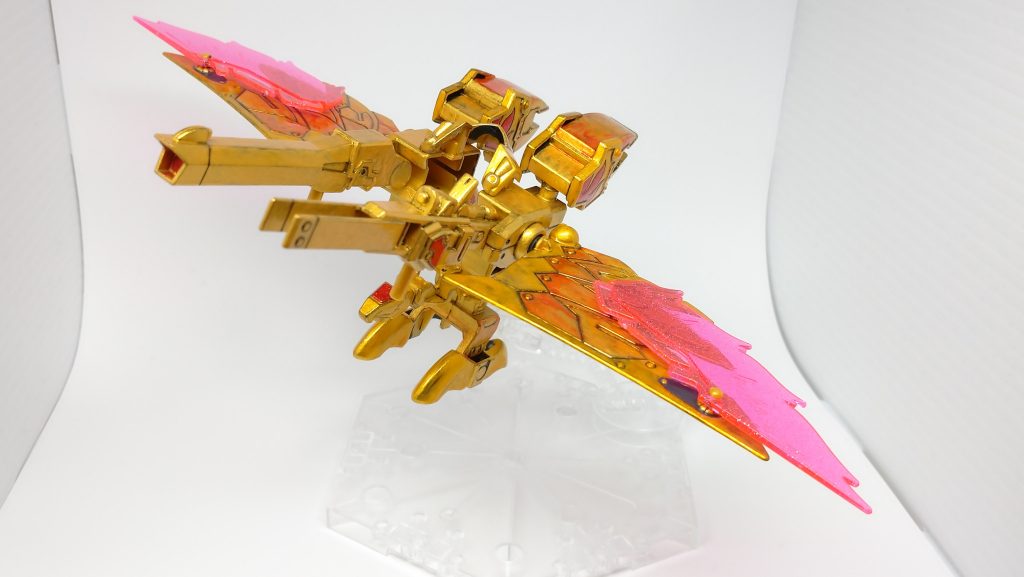 炎をイメージして翼と肩部にグラデーションになるよう挑戦しましたが薄かったかもしれません。