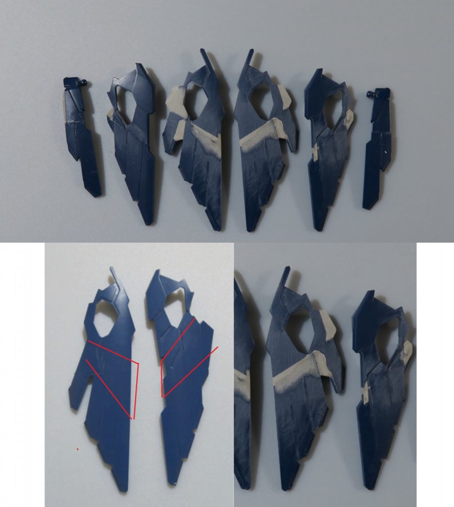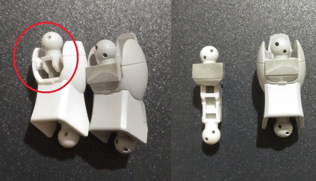 HGBFパーツはSDフレームに合わせて長さはSD化、そして肩と嚙み合わせのため改造しました。