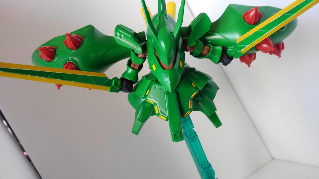 妄想設定では、得意距離は中距離で、ファンネルも飛ばすよりも身に付けたまま砲撃をおこなう事が多い。