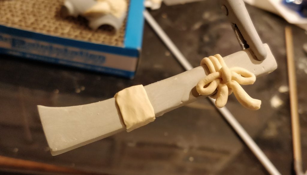 鞘には忍者刀や鞘はプラ板からフルスクラッチしています。