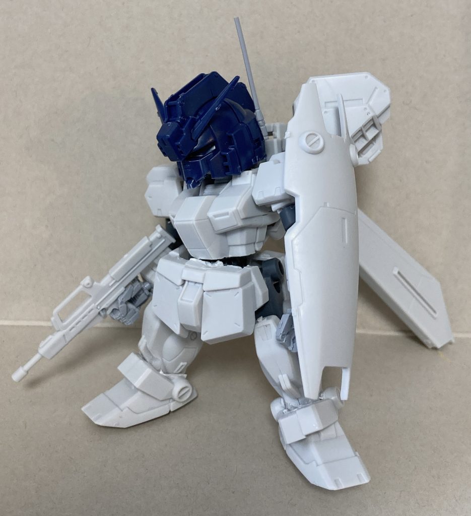 各部縮めてますが、フェイス下部を切り欠いて丸顔にしたのがSD化には効いている気がします。面長だとリアルすぎるんですよね。