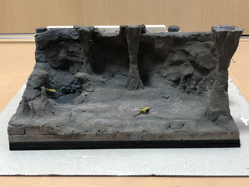 ジャブローの巨大洞窟基地内で繰り広げられたファーストガンダムの2つのシーン、シャア専用ズゴックに一撃でやられるジム(第29話 ジャブローに散る!)と、アッガイの上を恐る恐る歩くカツ・レツ・キッカ(第30話 小さな防衛線)をジオラマに詰め込んでみました。