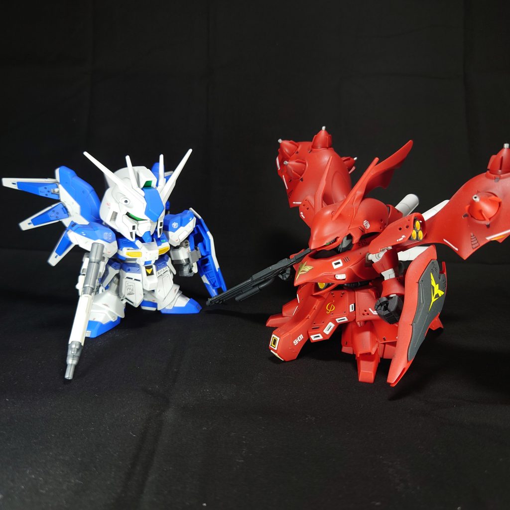 シリーズは、違いますが、Hi-νガンダムとツーショット、SDとして並べても遜色なく、カッコ良いですね(汗)