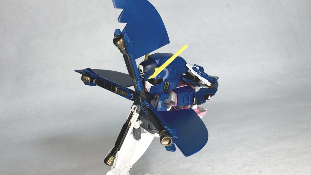 クロスボーンガンダム由来の大型スラスターで「かそく」は十分、大きく開く口は「かみつく」のに最適で、原型に倣うならば足に仕込んでいるはずのヒートダガーはさながら「ほのおのキバ」でしょうか。想像が膨らみます。