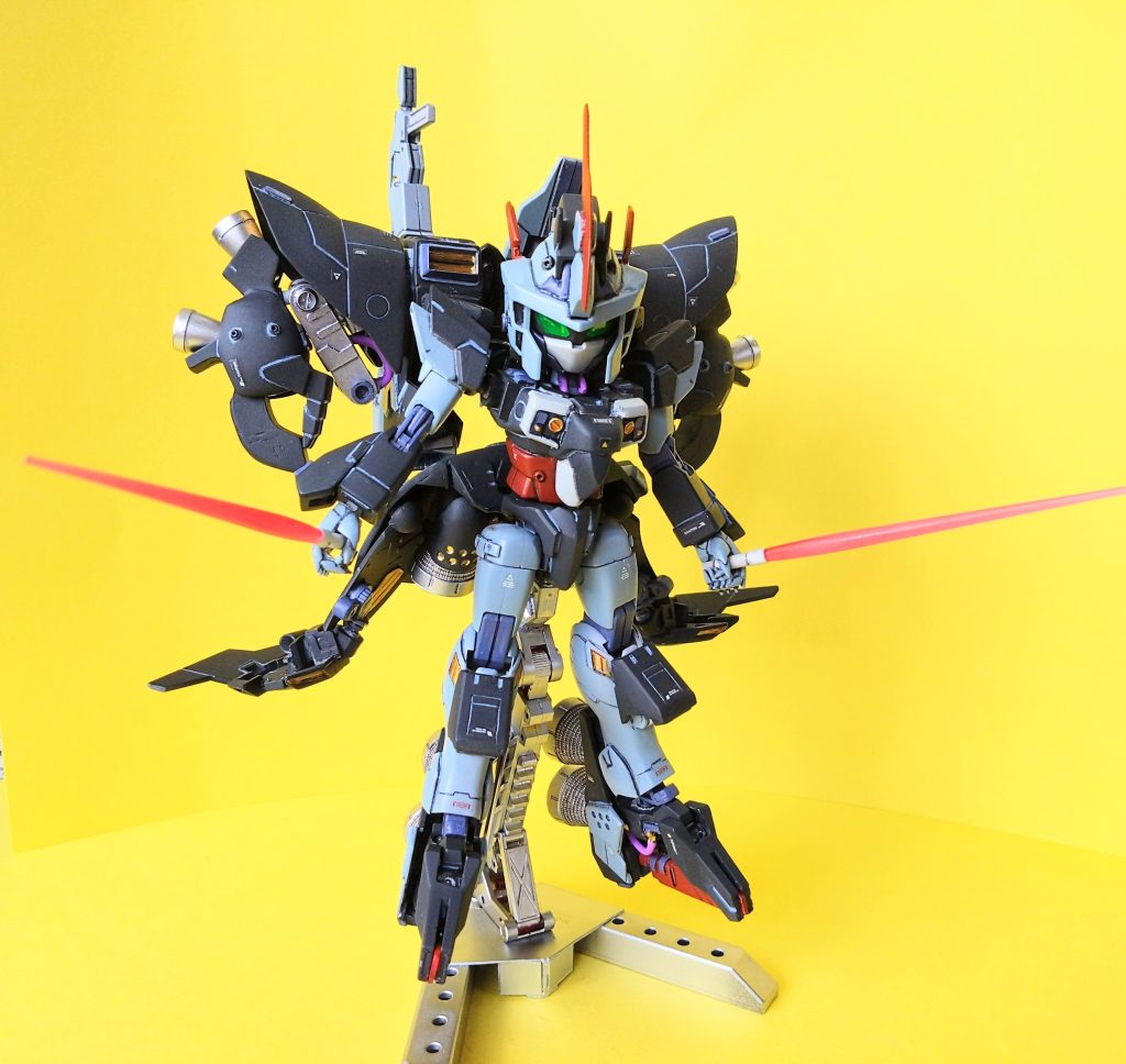 いわゆる素体の状態。ハンドビームガン、シールド、ビームサーベルと、スタンダードなMSの性能・装備をしているが。格闘系のガンプラパーツを使っているため、通常より柔軟性のある動きが可能。