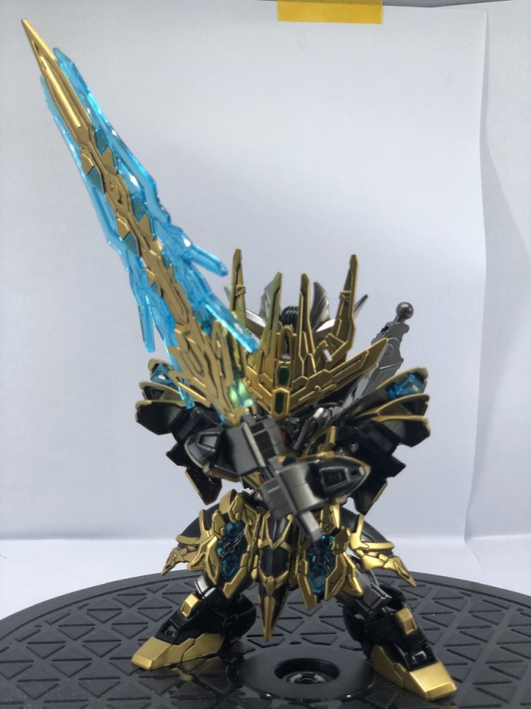我家的曹大爺,果然不負其名‘天霸’,擺起pose 來魄力足,而自家亂來的SDCS 融合的創傑角色,在可動方面全超出我所預期的,帶霸氣的動作都可handle 得到。羽量加强後,令曹操作為老大的質感大大提升,其6劍的靈感來自白雪姫的羽冀炮,而翼本身及原本天霸的臂甲則參考了wing zero custom ver ka 的機械感及手臂的後備彈匣,燈箱背景比較粗糙,請自行過濾就好了🤣🤣