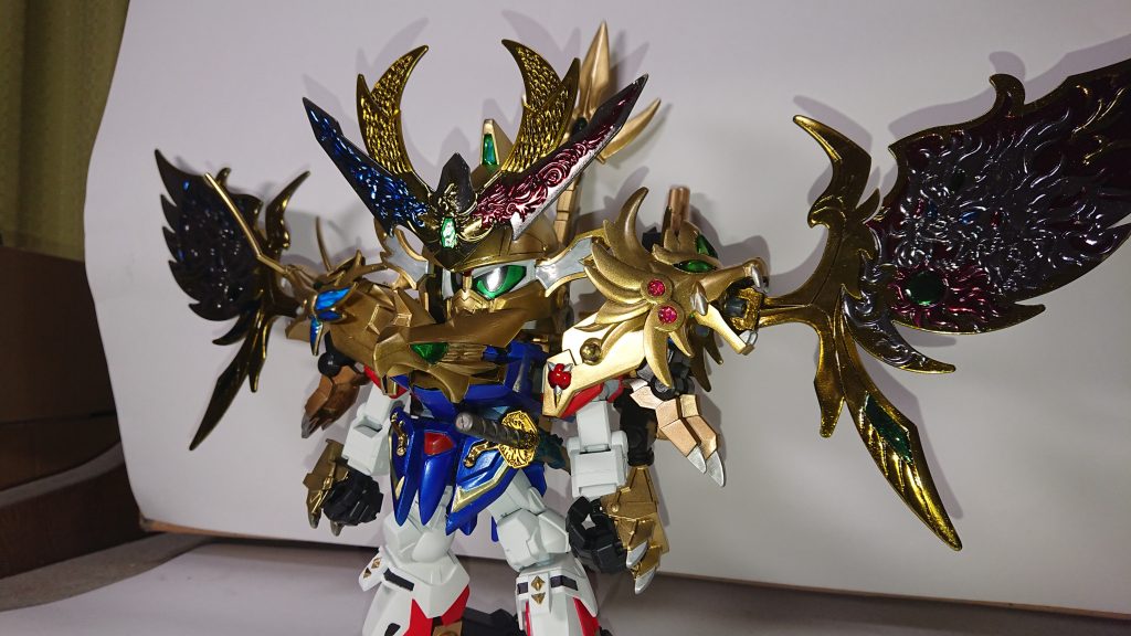 まずは新號斗丸形態 豪華版劉備ガンダムを素体にしたので可動域が広がりました。一応片足立ち出来ます。