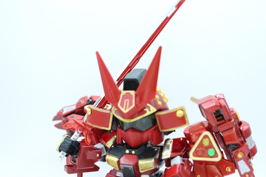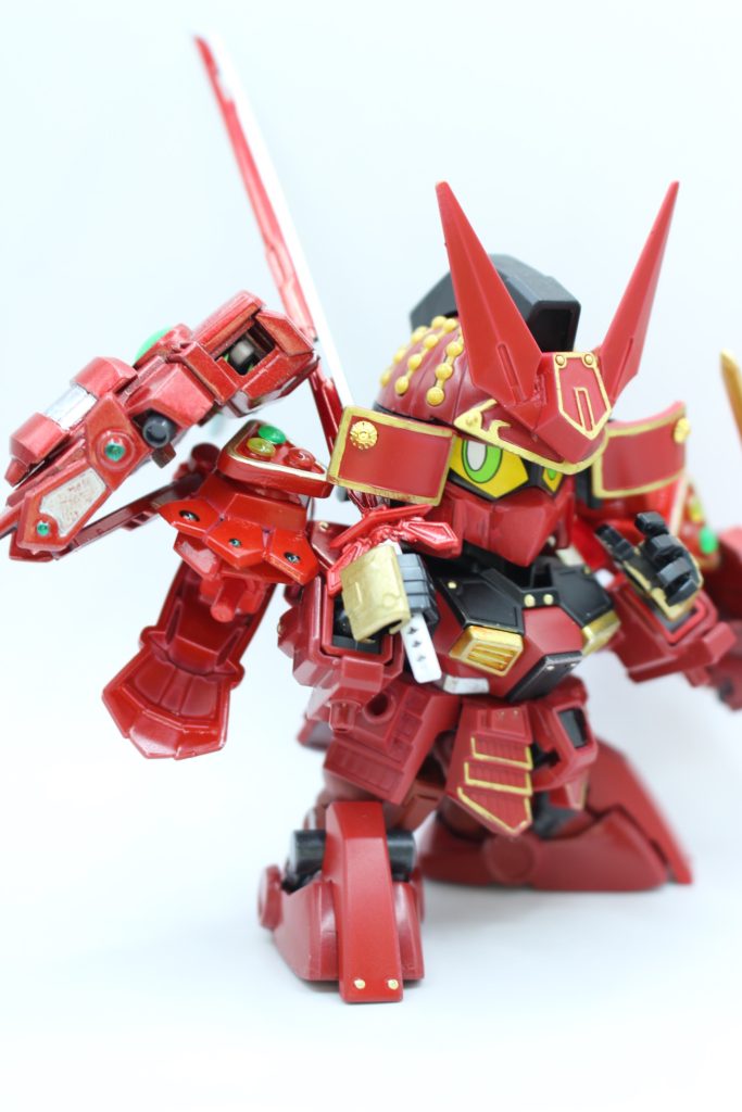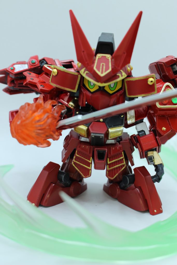 また、お遊び設定ですが、アメイジングレッドウォーリアの制作者メイジン・カワグチの異名「紅の彗星」の頭文字を3振りの刀の名前にして、そこに以前私が担当・制作したSD兵庫支部のオリジナル企画のキャラクターを繋げてみました。