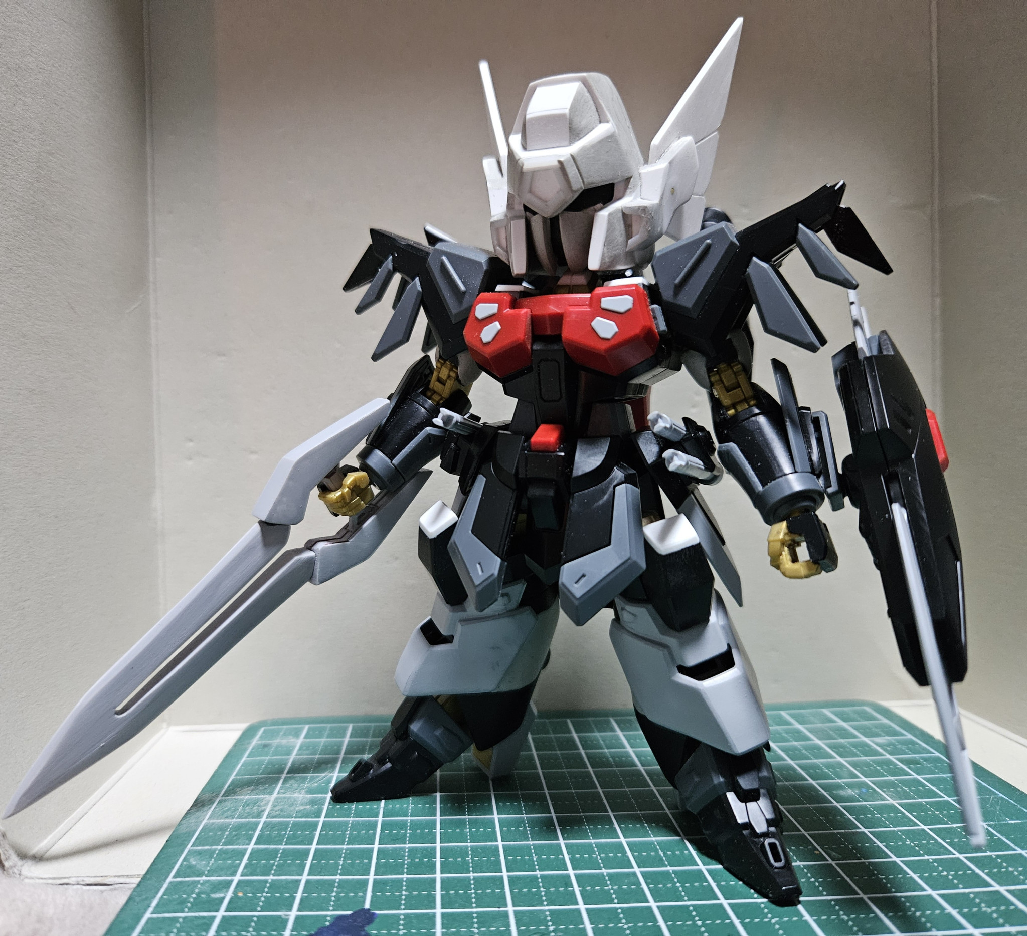 頭部にSDEXトライバーニングガンダムを使い体はHGを切り詰めて製作しました