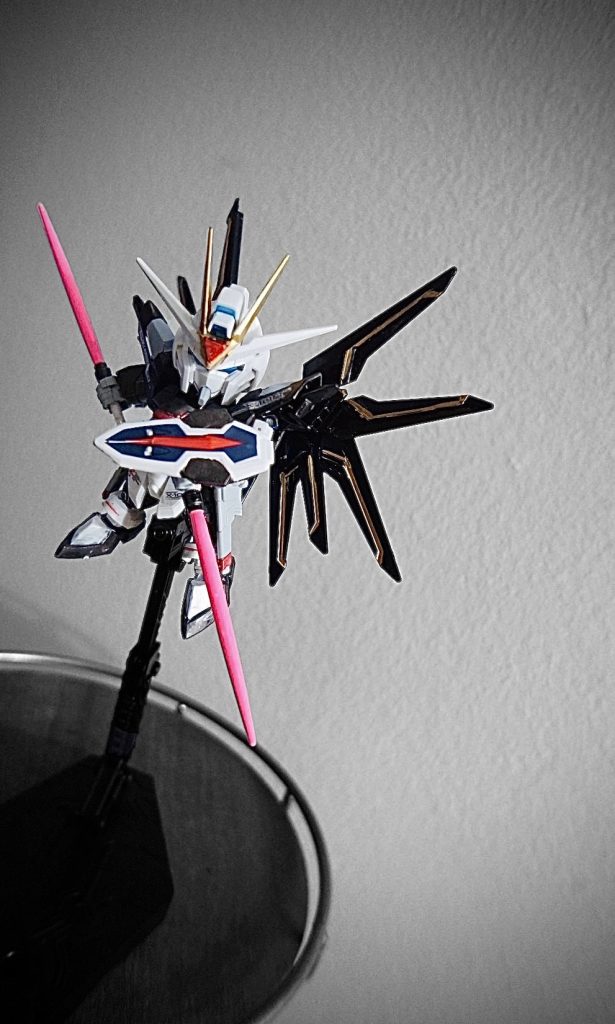 月に1作品を作ろうという目標でガンプラ作りを始めて半年。お題でモチベーション上げをしつつ、気楽に作ってみようと手を出したライジングフリーダム。なんとなく自分の中ではキラの黒い服装のイメージ。やり残し感はありつつも今回も力尽きた。SDはシンプルだけどやりこみ要素も多くまた作ってみたいと思う。
