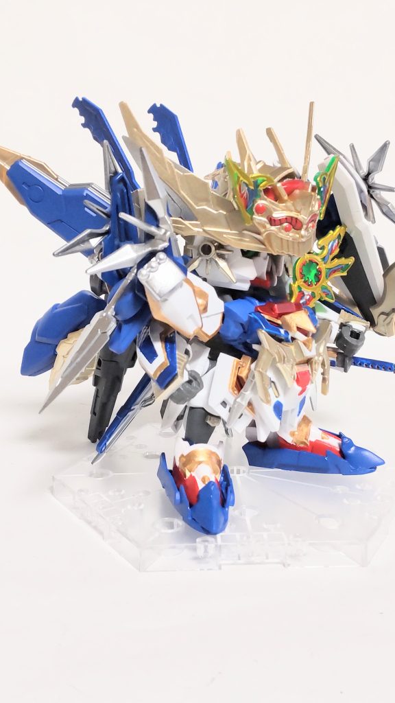 兜はSDEXエアリアルの頭部を少し加工して被せています。思いの外、ジャストフィットだったので加工も楽でした😁胸についていたお面も外すのはもったいなかったので、兜飾りに利用しました。