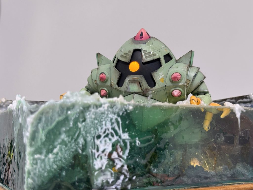 久しぶりの投稿となります!忙しさがピークで製作に追われてますがミニジオラマを3点見て頂こうと思い投稿させて頂きました。前回ズコックを使いジオラマを製作したのですが今回も水泳部!! しかもSDさん達を使いStillness and Motion.と題して出したシリーズの続き的な立ち位置で製作してみました。ゾック本体は肉抜きの埋め(爪や腕部等)スジボリの追加、段落ちモールドの追加、8個ギミックの追加、粒子砲部のディティールの追加、その他ちょこちょこいじってみました。