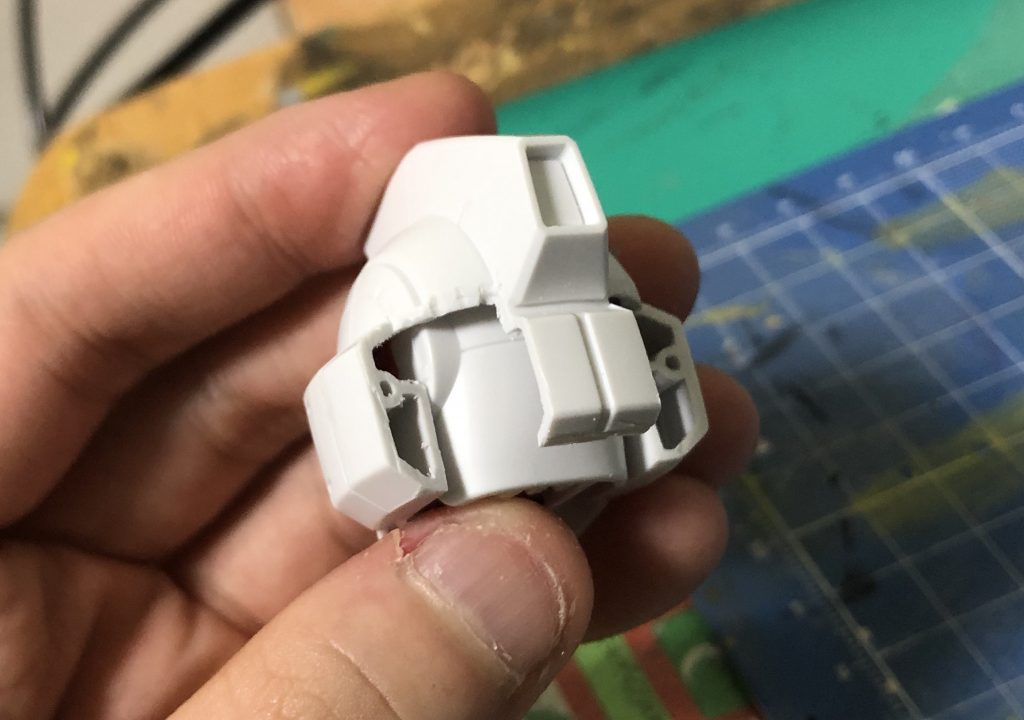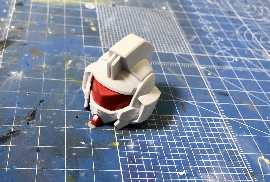 頭部はbb戦士 AGE-1を使用しました。エッチングソーで切断し、切れ目のあるプラ板を接着しました。