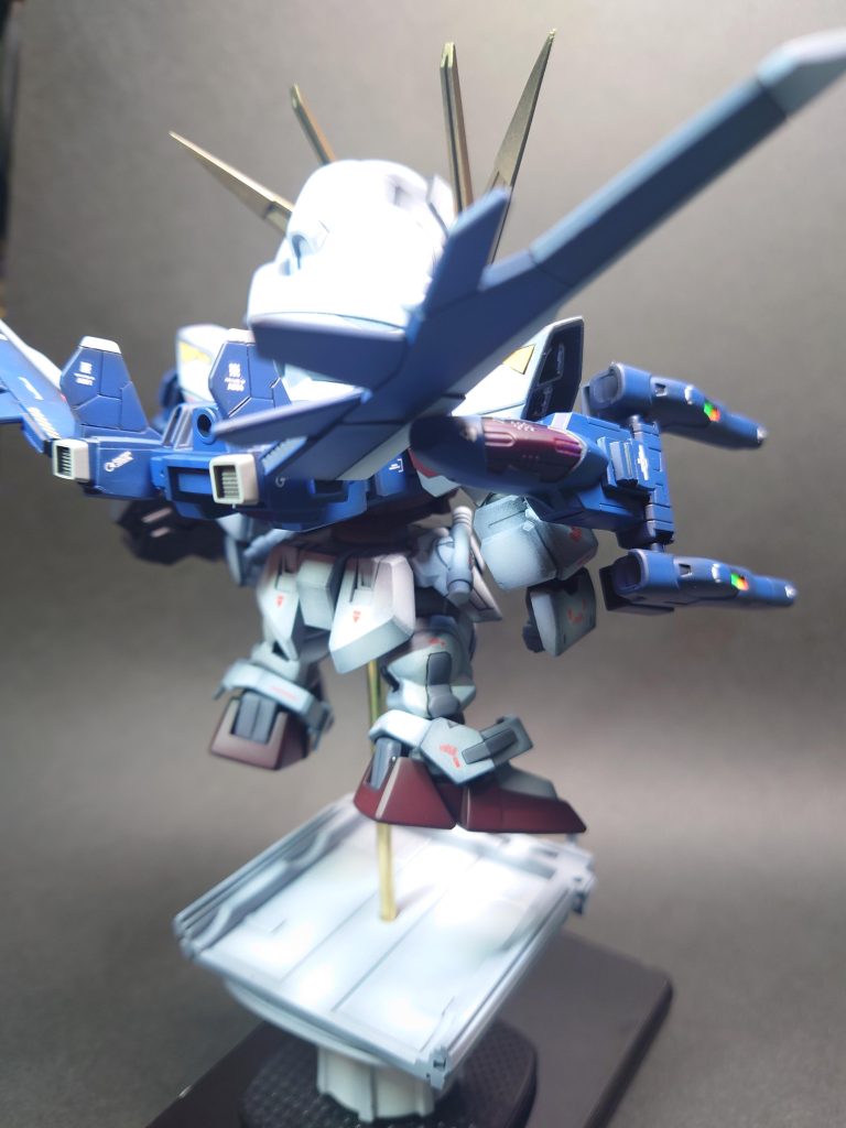 頭のセンサー箇所とバルカンを弄って、腰のアーマーを分割して可動式にしました