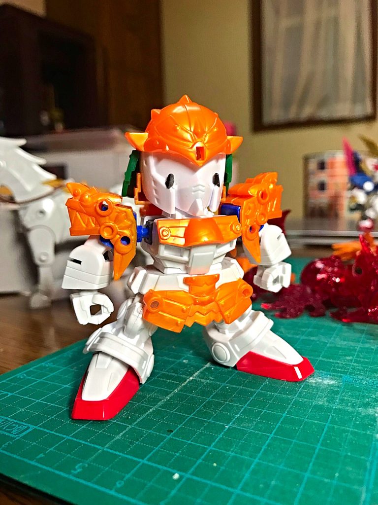 レジェンドBBナイトガンダムのパーツを使って、鎧状態でのボリュームアップとともに、レッドバトラー状態でレジェンドBBと並べても違和感ないようできたと思います。
