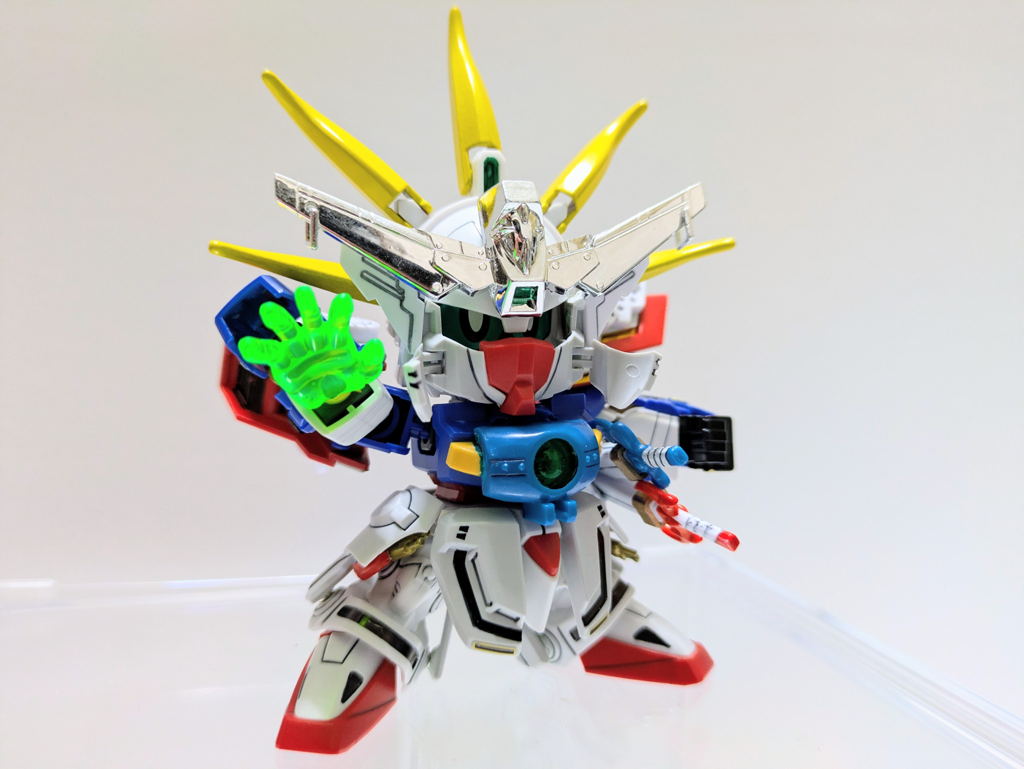 シャイニングフィンガー! こちらもそのまんまです、すみません。ボールジョイントが少し大きかったので削って合うようにしました。メッキパーツもいいですが、クリアパーツもやはり映えますね。全然武者っぽくないけど…この必殺技だけはやはり取り入れたかったので満足。