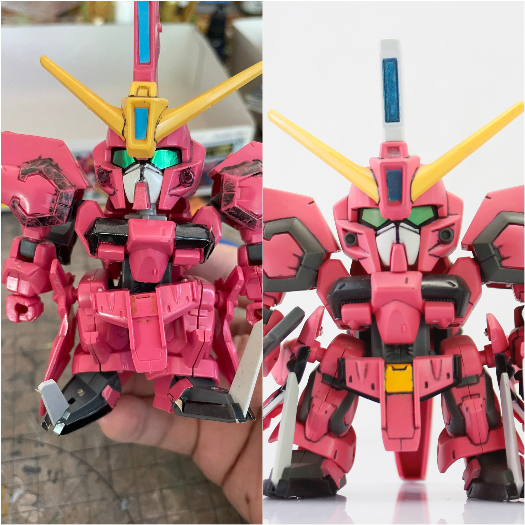 Asian SD 2025.06/21更新 SD イージスガンダム 部分塗装リメイク 1056 81 いいねしたモデラー(81) 2 0 作品を共有 20年前に組んだSDイージスガンダムを再制作。 溶剤で旧塗装除去、そしてゲート処理、その後、部分塗装&墨入れを実施。 変形ギミックがいるので、MS/MA形態を各1体製作、両形態を永久固定展示。 MS形態MA形態二十年前、乱暴な素組み...以上が今回のSDイージスガンダムの紹介です。今後も過去作や新作を随時アップしていきます! イージスガンダム SDガンダム BB戦士 機動戦士ガンダムSEED リメイク 部分塗装 コメント コメントをして応援しよう コメントにはログインが必要です ヘビー老ガン 6か月前 執念の5機体コンプリート素敵でカッコ良いですね。 SDイージスのMA形態時の頭部を見事に収納しているSD世界のコズミックイラの技術力恐るべし!(笑)。 Asian 6か月前 ありがとうございます! SDイージスのMA形態時の頭部収納… キットでもゲームでも、まるで異次元に消えてるみたいですよね!(笑) Asian 好きなプラモデルを好きな時に好きなやり方で作りたいですが、もう時間があまりないの社畜です。 9 SDEX マイティーライジングフリーダムガンダム 今回投稿するのは、SDCSプラウドディフェンダーを装備したS… 17 SDガンダム ストライクノワール ヴェルデバスター ブルデュ… 『機動戦士ガンダムSEEDC.E.73STARGAZER』に… 7 MG ガンダムMk-Ⅱ(解体途中) 『機動戦士Zガンダム』に登場する、解体途中で左腕がない状態の… 10 HG ガンダムプルトーネブラック 『機動戦士ガンダム00F』に登場する、イノベイター勢力がヴェ… Asianさんのページ この作品をお薦め作品に設定する Please login to update your profile! Please login to update your profile! Please login to update your profile! Please login to update your profile!