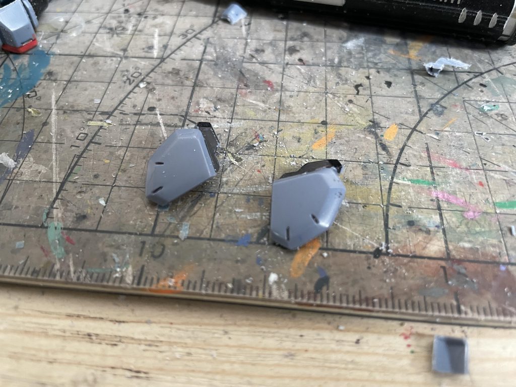 3. 切断したスカートアーマー2枚を後腰部に接着固定