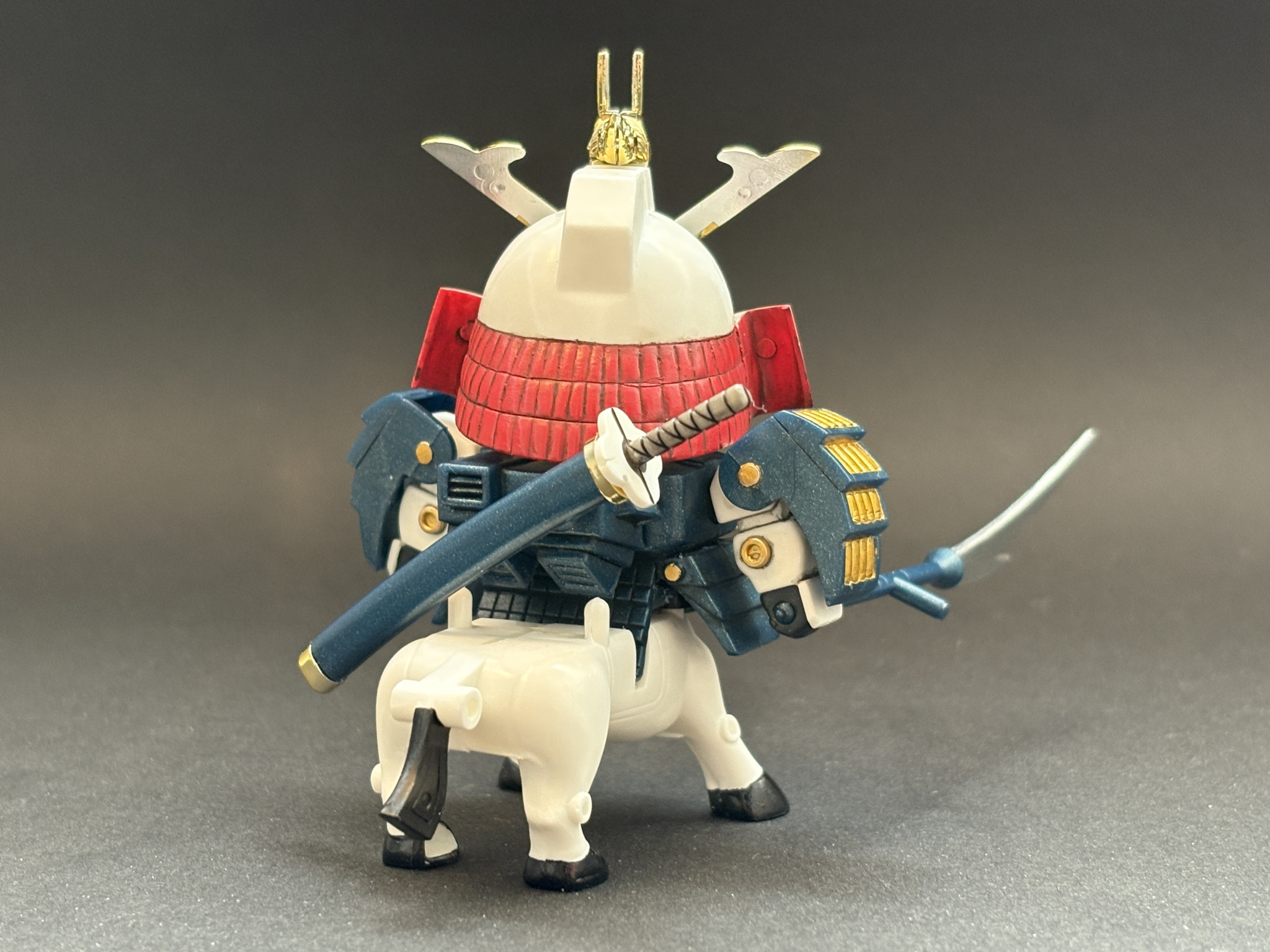 本当は兜の顔横に緑色と龍の模様があるのですがシールは浮いてしまうのと筆で再現する根性もなかったので白で終わりました。笑
