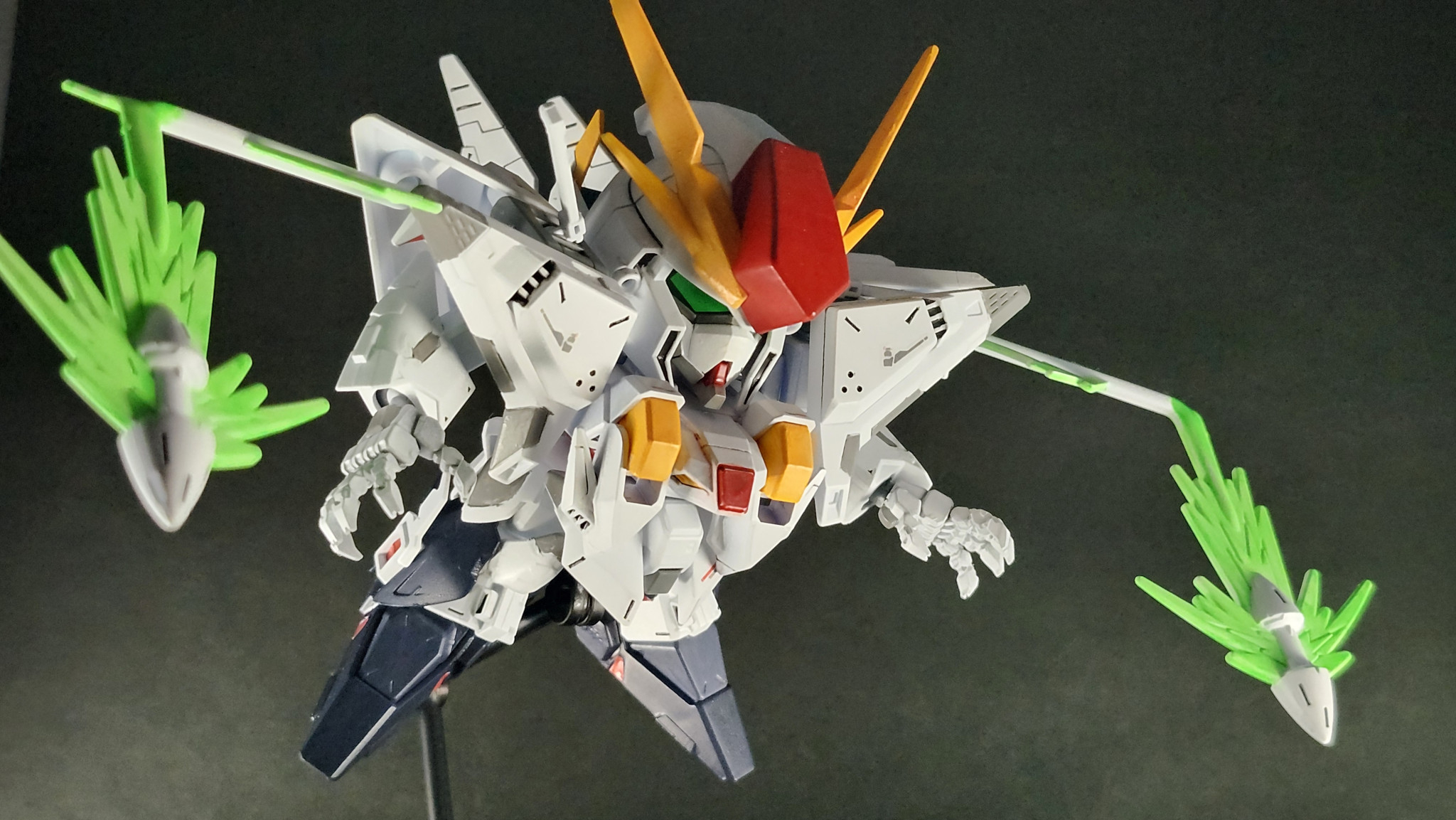 蛍光塗料でファンネルミサイルの軌跡が光ります。光ることにさっき気付きました。