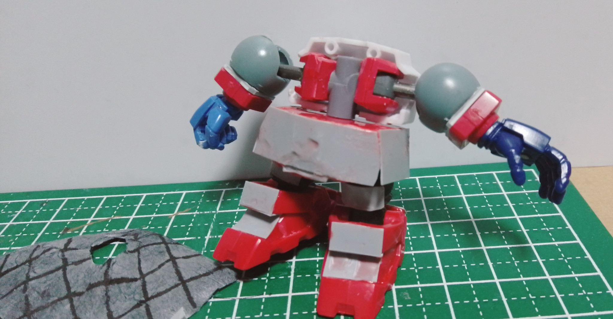 前にグイッと。ちなみに肩はガンタンクの物を分割して使っています。