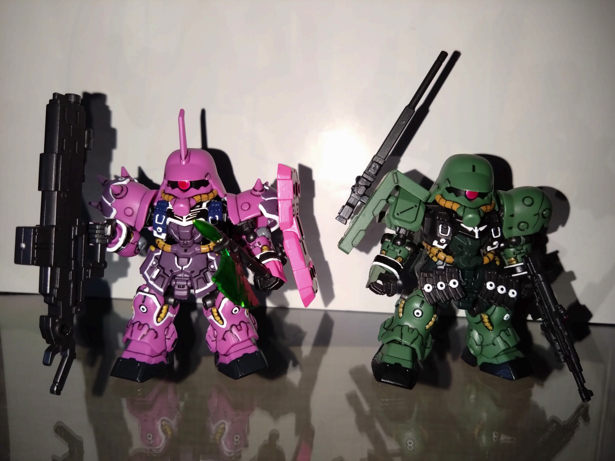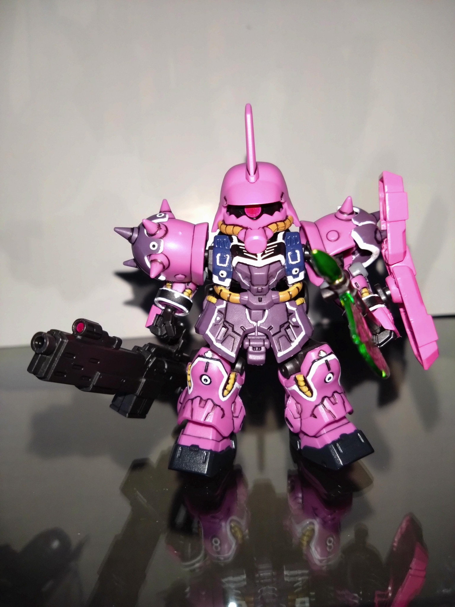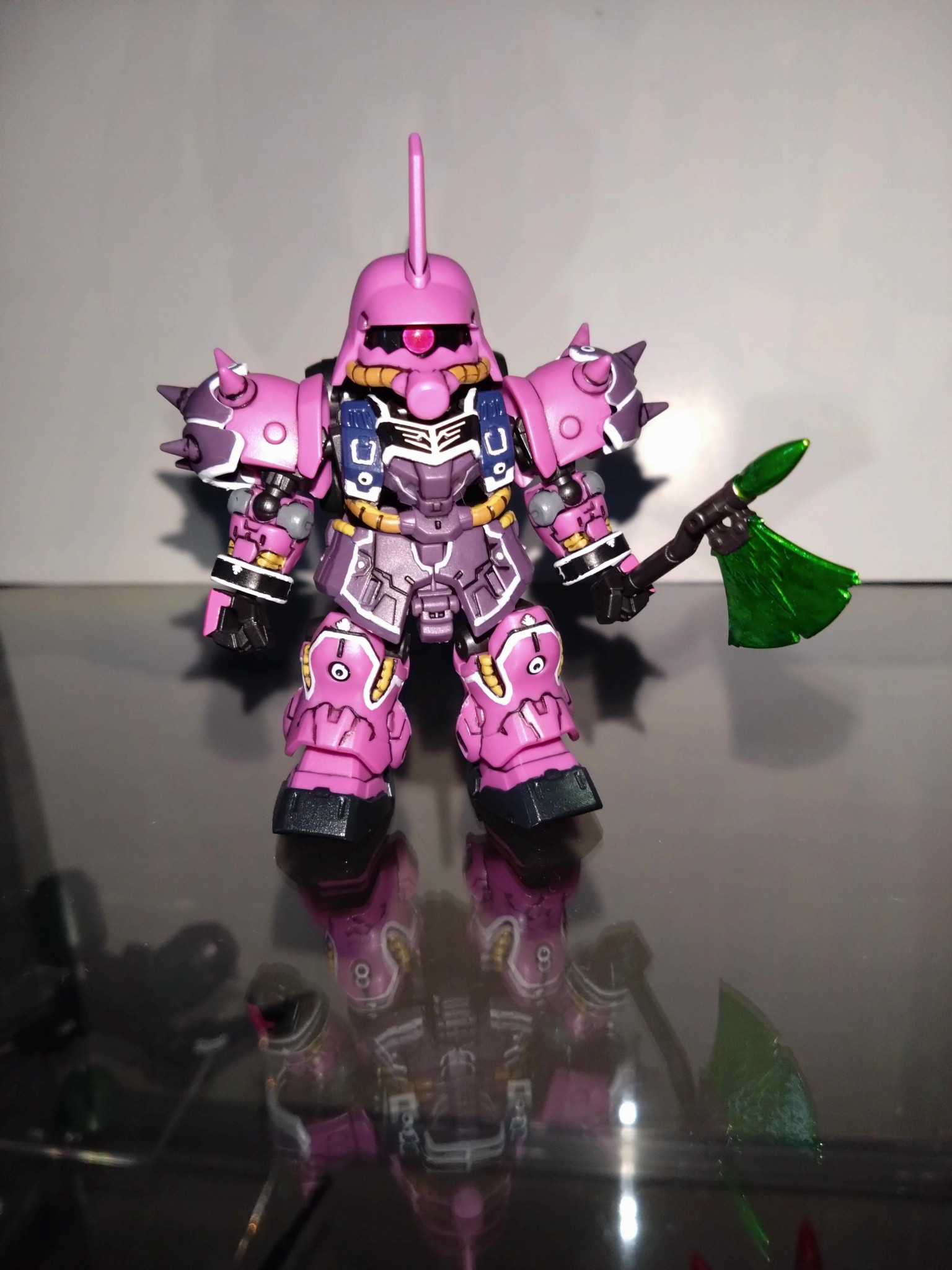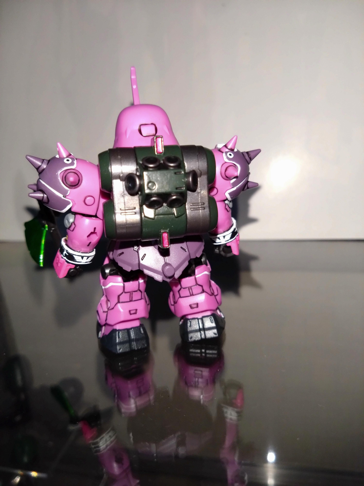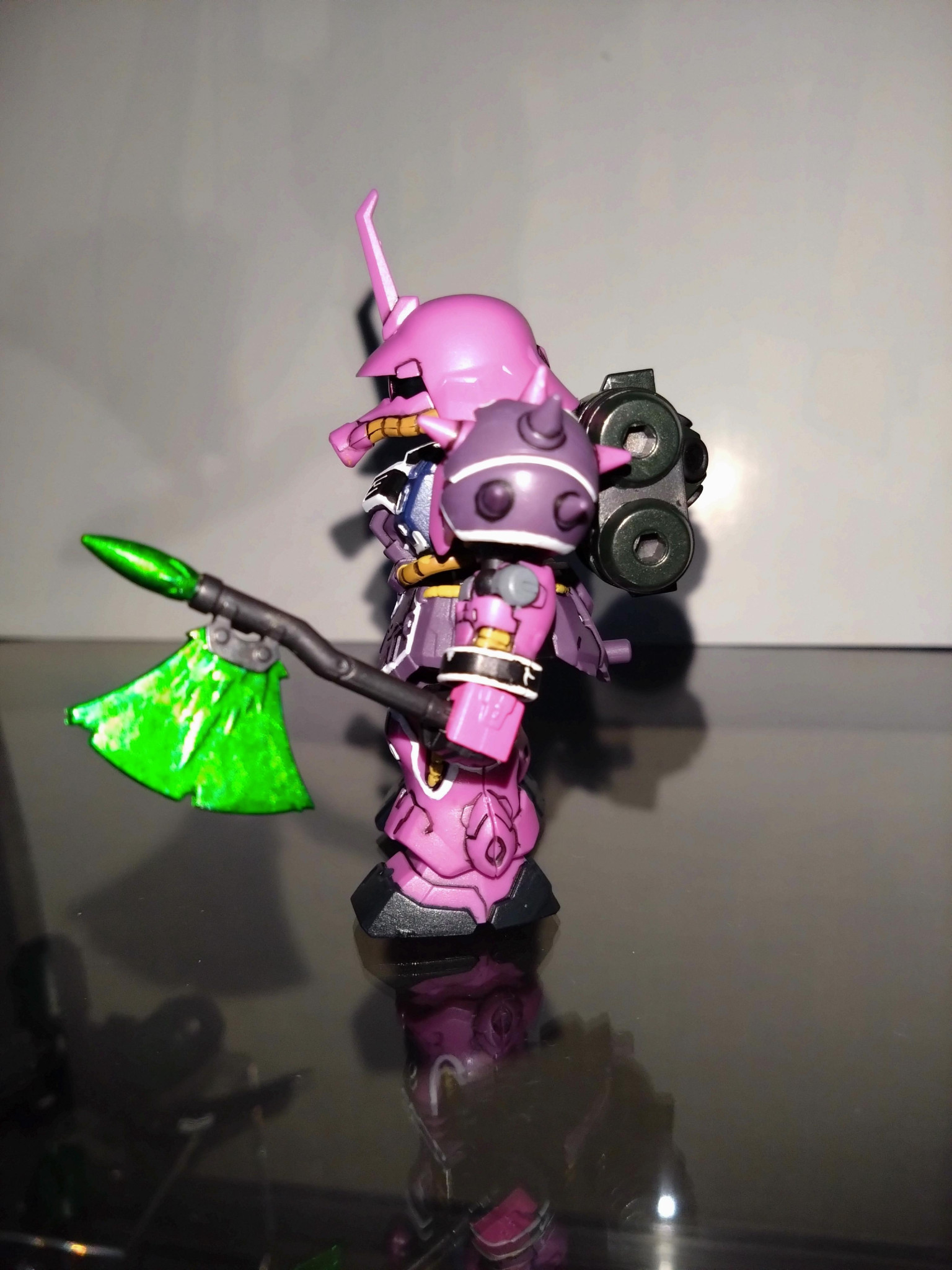 ヒートホークはシルバー→クリアイエロー→クリアグリーンを重ね塗り、モノアイとセンサーはラッカーのシルバーの上にGXクリアピンクを重ねてます。