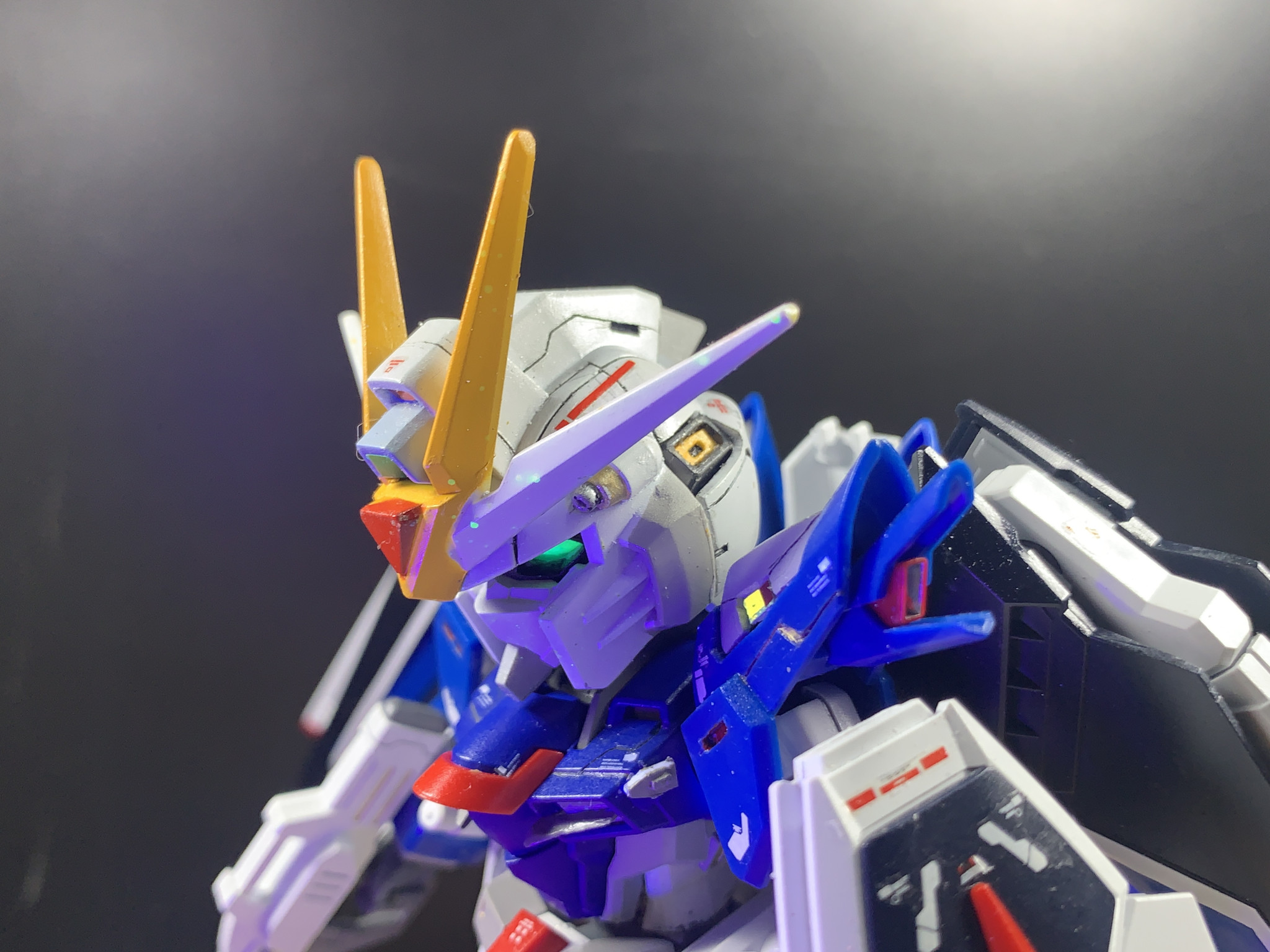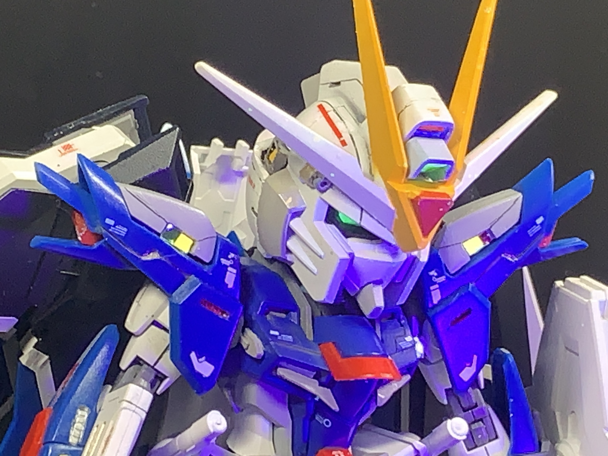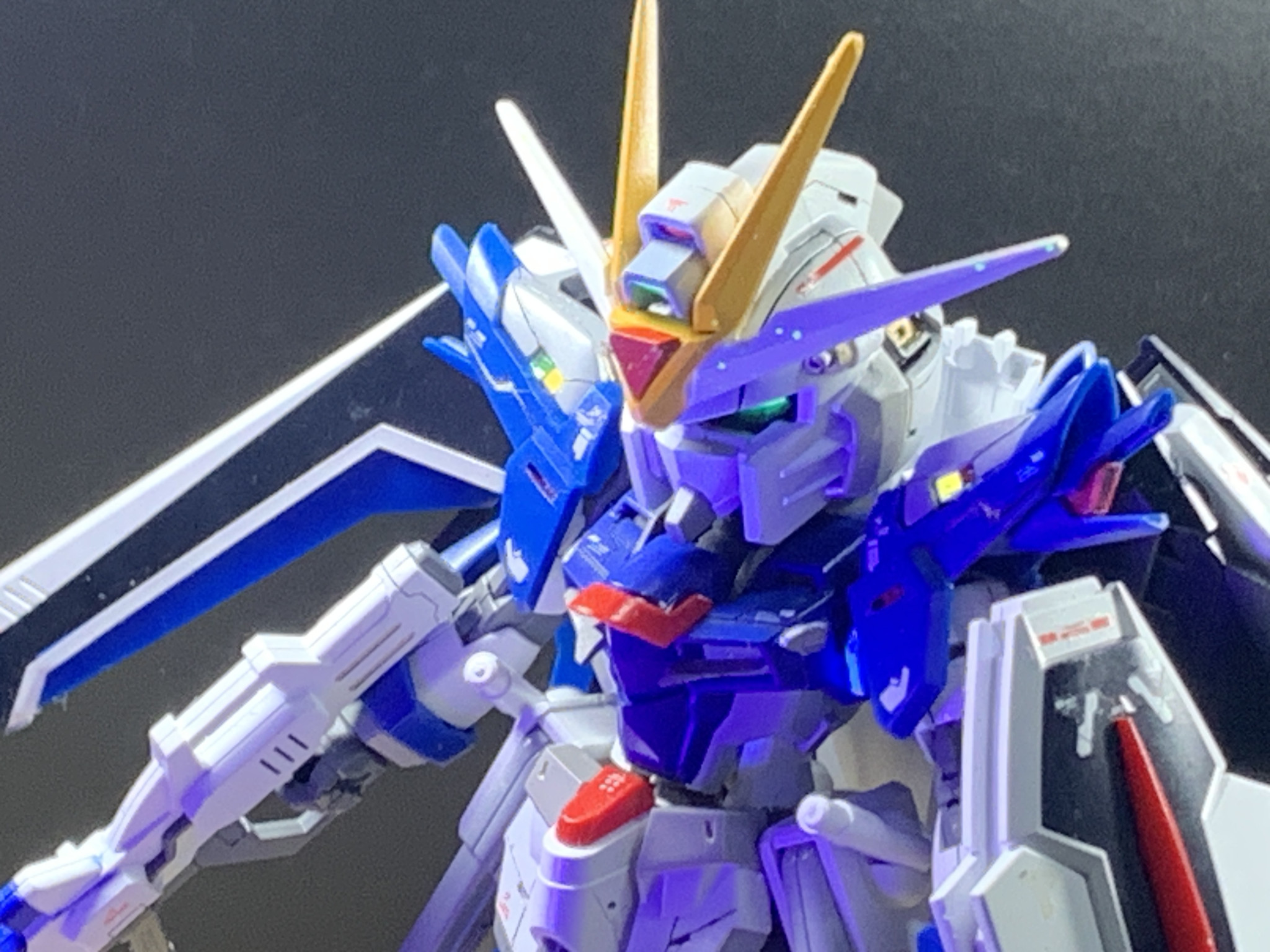 顔のアップ。フリーダムガンダムの系譜であるライジングフリーダムガンダムはやはりカッコいい‼️