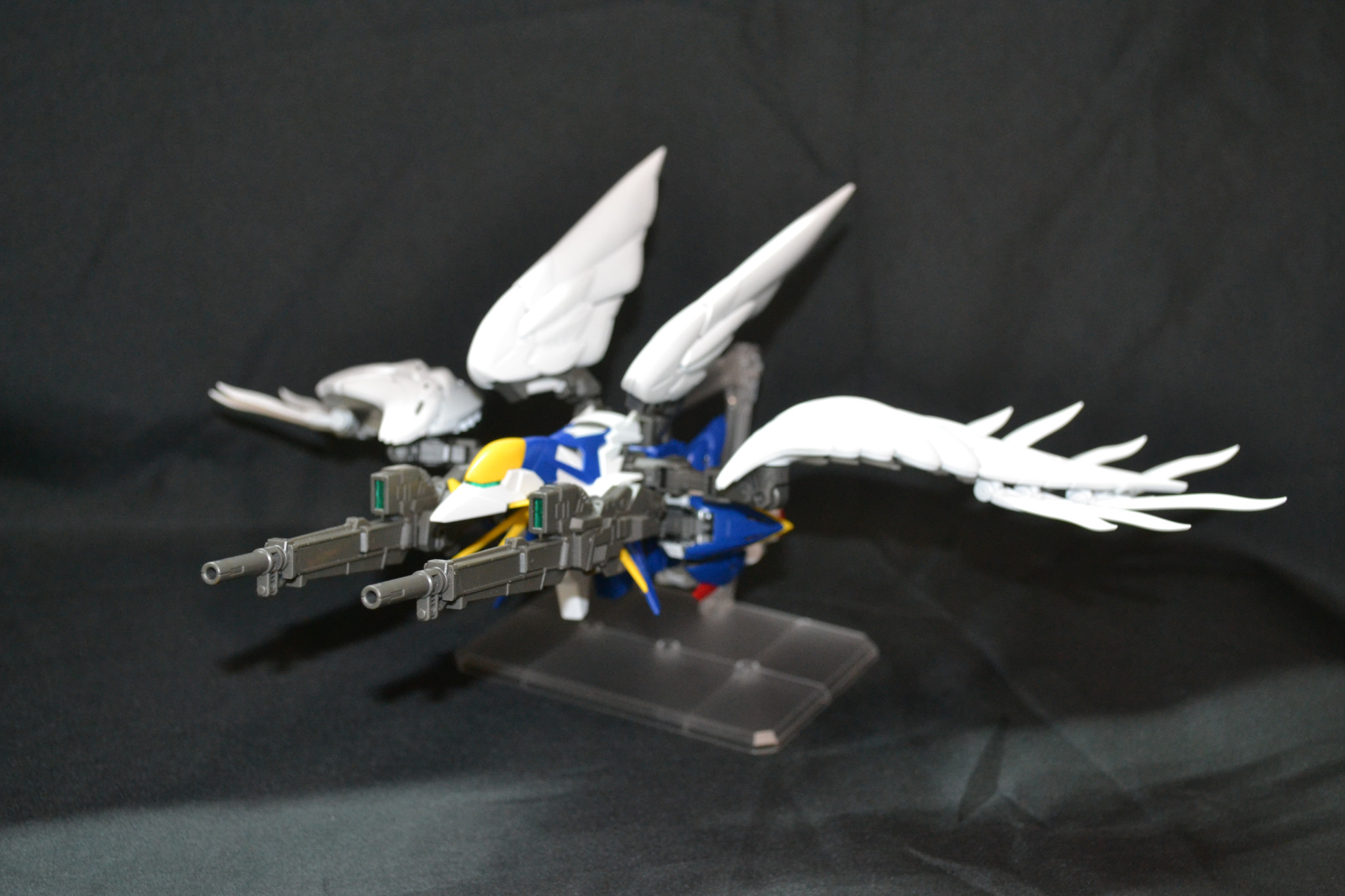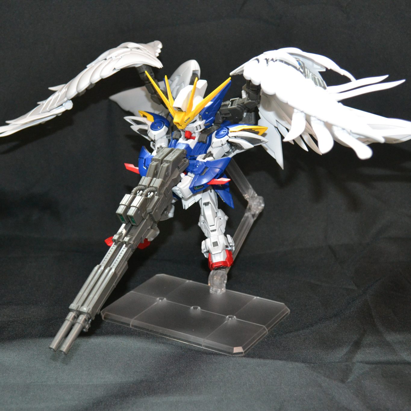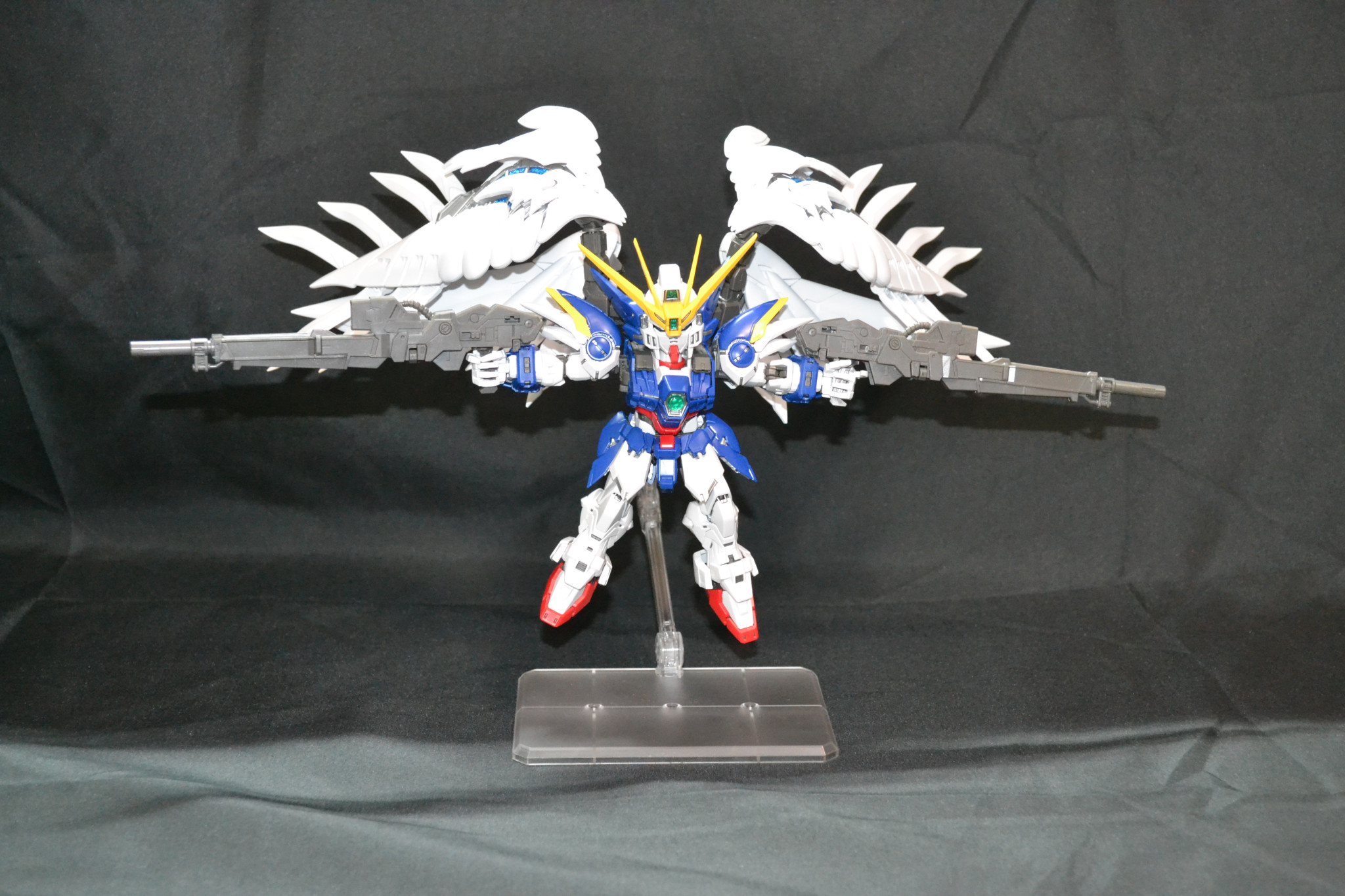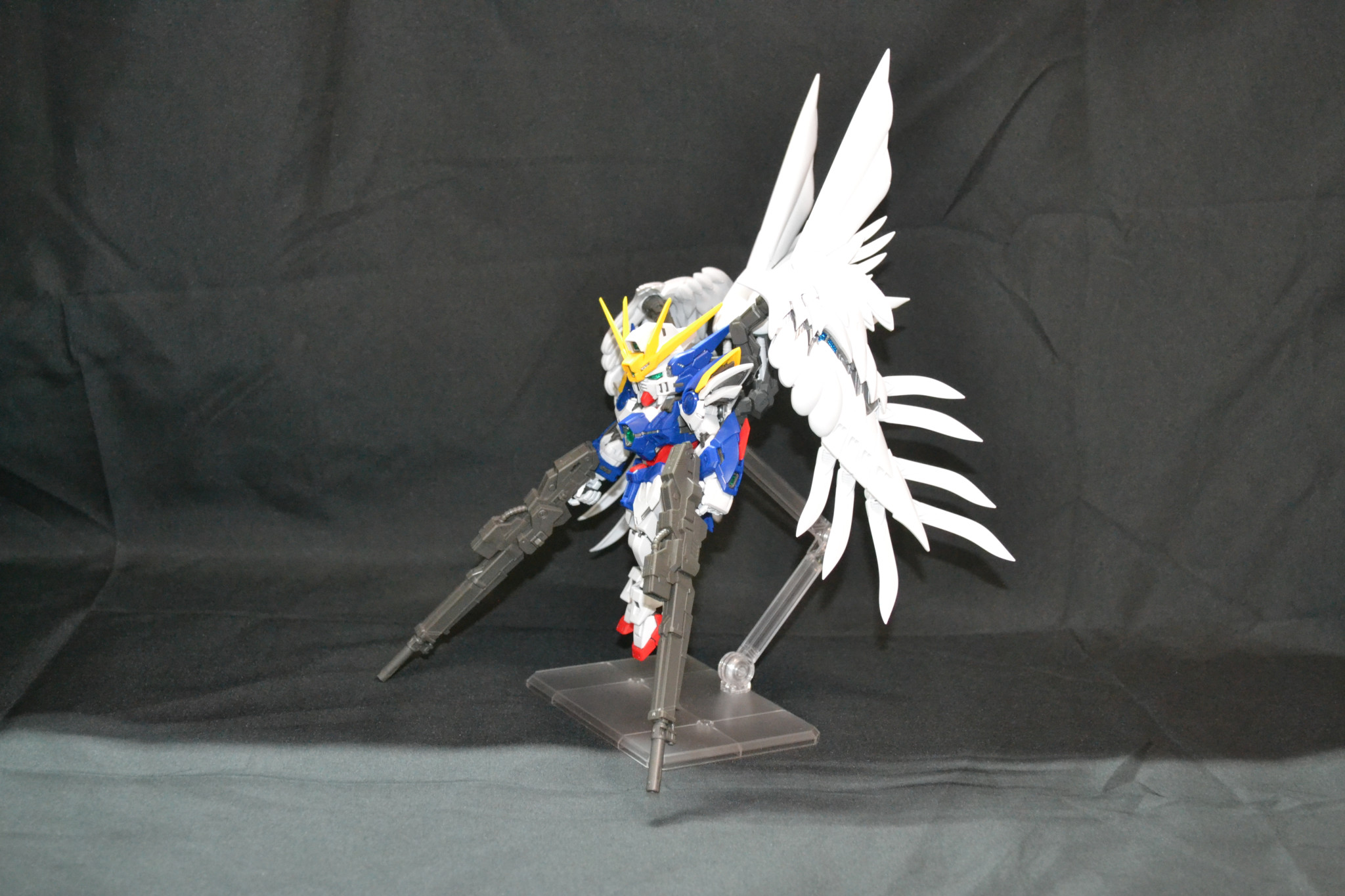MGSDのウィングガンダム(EW)です。これは発売日に家族にプレゼントとして購入したのですが……その本人がSD体系があまり好みではなかったのでずっと積んでたのですが……先日のフリーダムでMGSDのすばらしさを確認できたので作りました。今超大型キットを作成しているので数か月投稿があるかどうかですが…….まあ大丈夫でしょう(*’▽’)