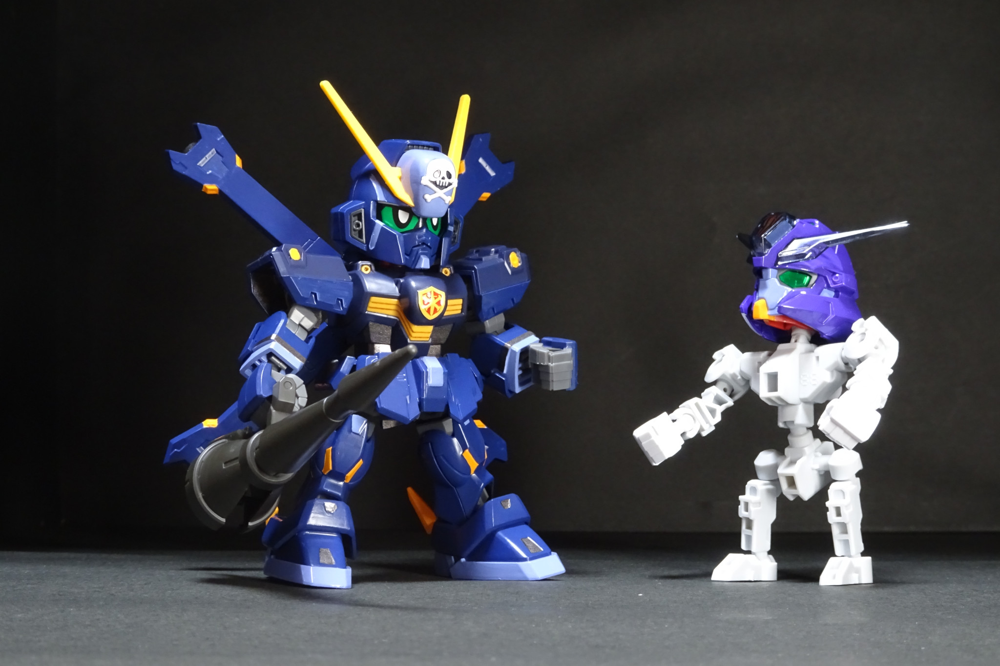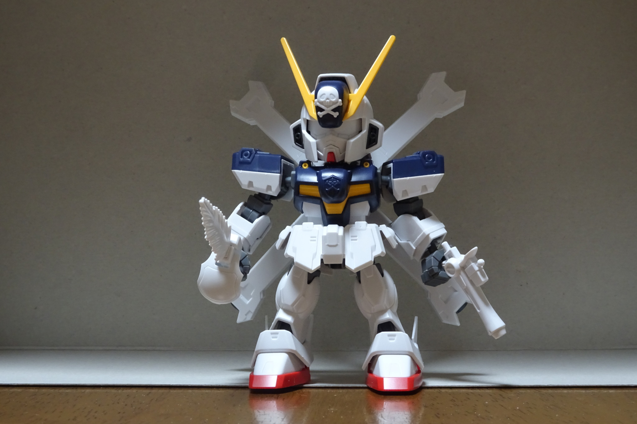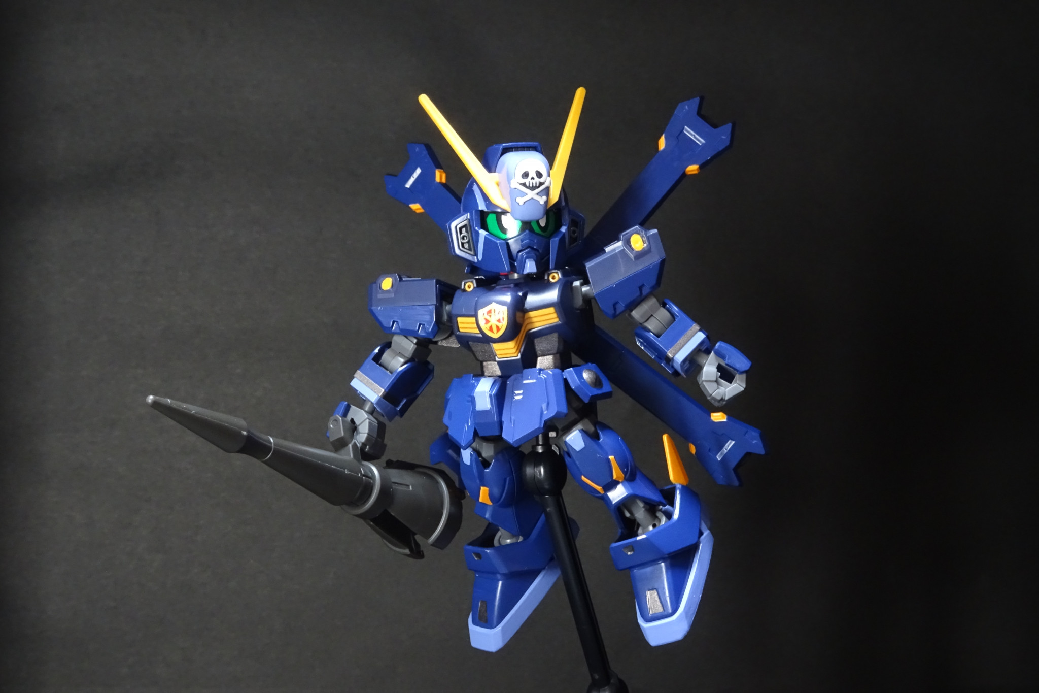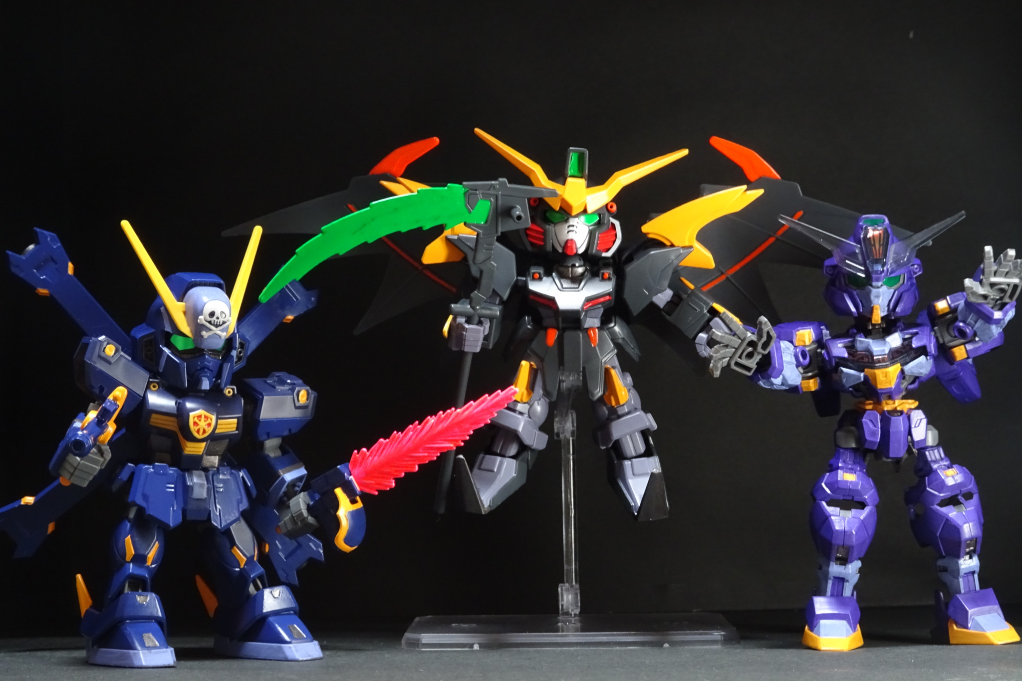 クロスボーン・ガンダムX2もシタデルのナルンオイルでつや消し&汚し、最もハロウィンらしいSDEXのデスサイズヘルEWと一緒に撮影。