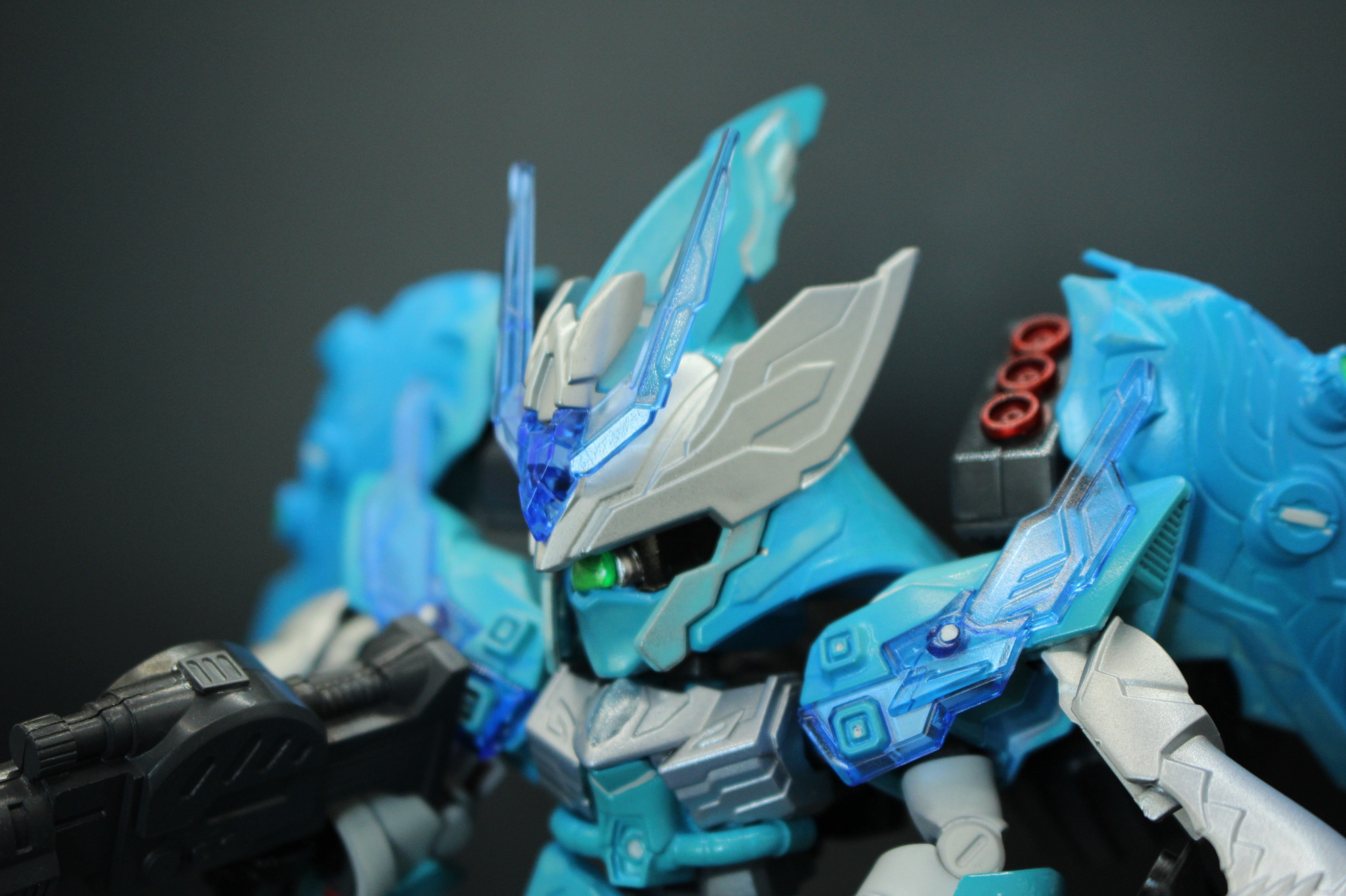 「よっしゃ、ならゆっきーイメージでサザビー作ろう」→「サザビーをターコイズカラー、、、ん?ミス・サザビーの色味に近い?」→「どうせならGアームズ世界観で作りたい」という流れでこうなりました。