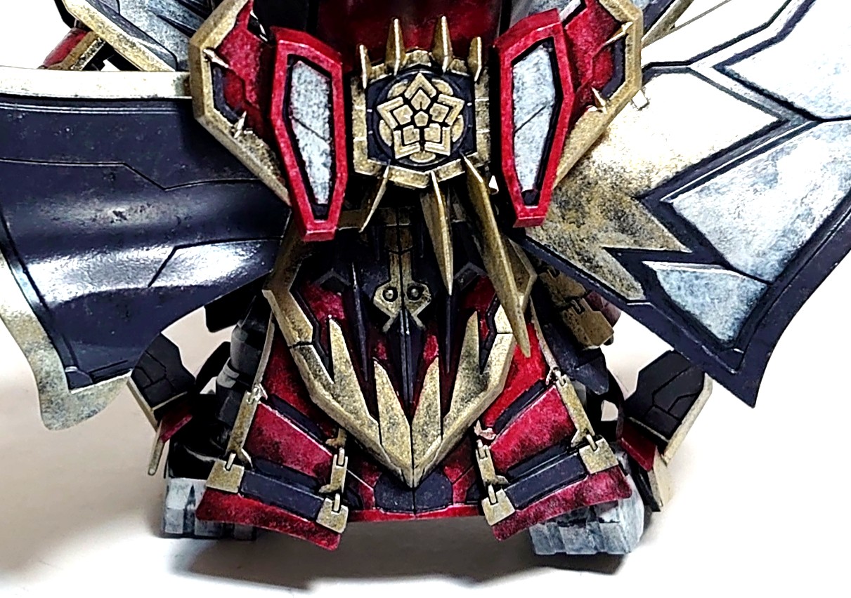 腰部パーツは塗装例や配色についての公式情報がネット上では発見できず。検索にヒットしたのは以前にGUNSTAへ投稿されていた先人の方々の作品の塗り分け。それらを参考にさせて頂きました。