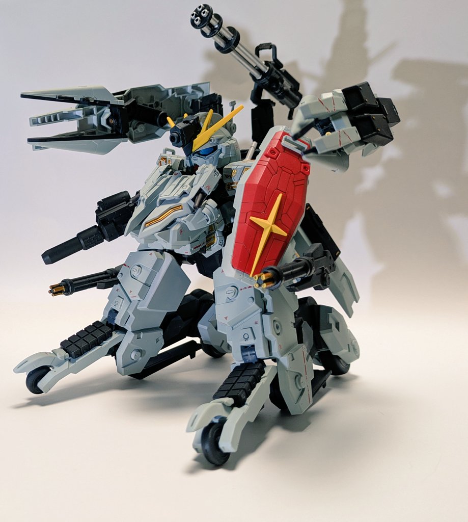 ガンダムアイゼン本体 νガンダムの量産試作モデルに増加装甲を取り付け、改造された物