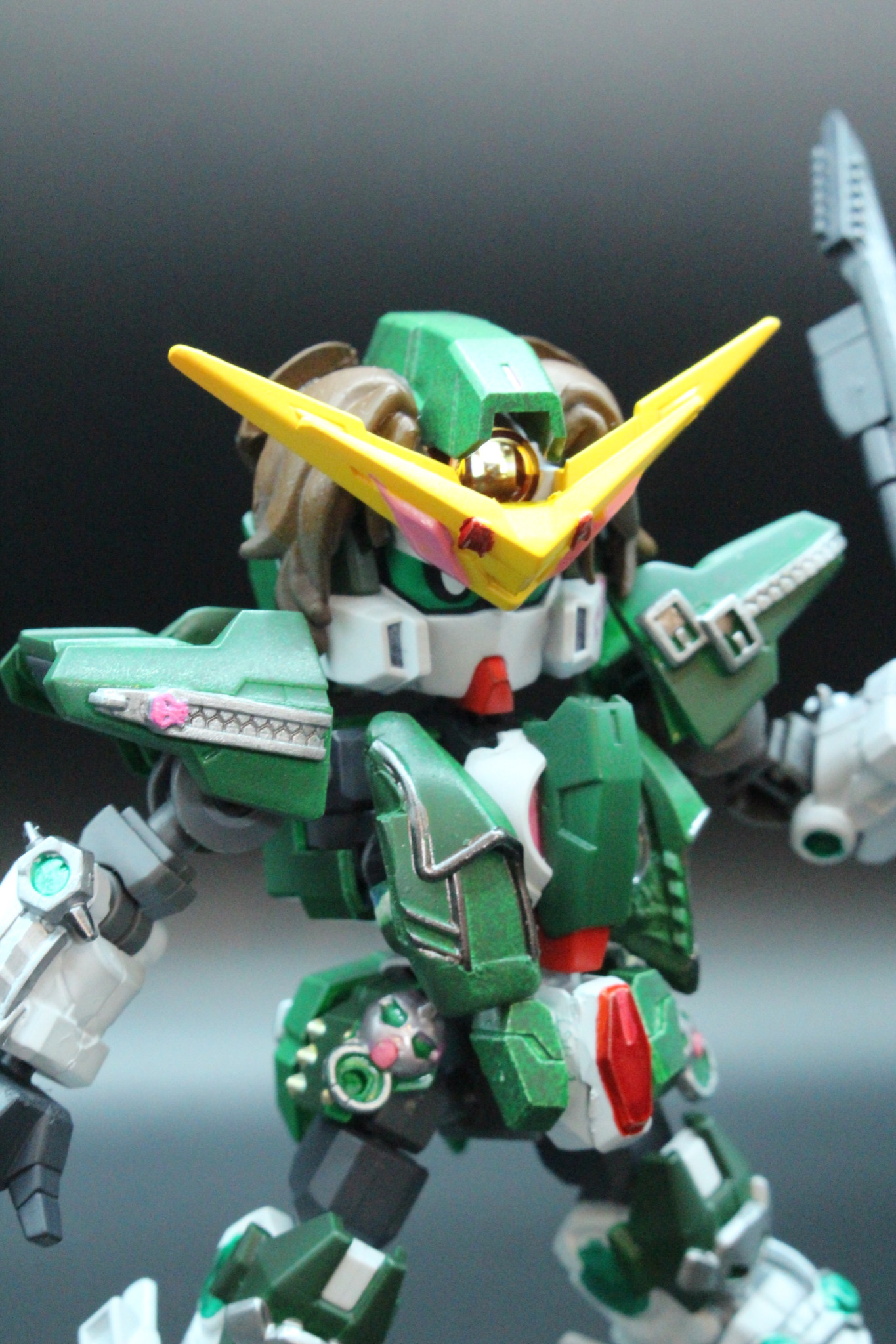私の担当は「デュナメス」ということで、クロスシルエットのガンダムキャリバーンをフレームにして黄忠ガンダムデュナメス、HGデュナメスなどをミキシングして作成しました!