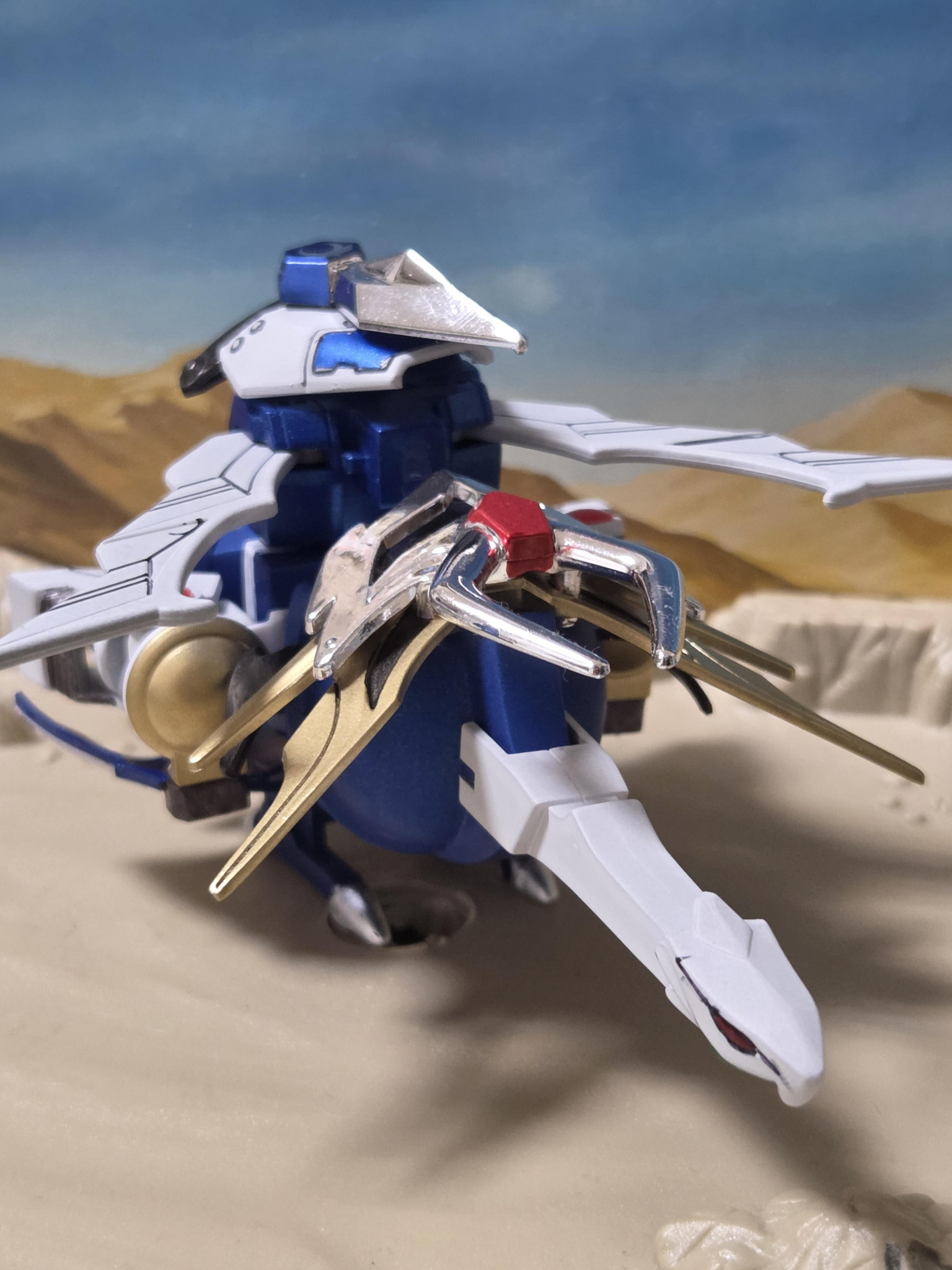 飛勇鶴形態。コミックワールドやボンボンの漫画版では全く出番がなく影が薄い印象。ビルドファイターズトライで出てきて必殺技扱いになってるのがびっくりでした。