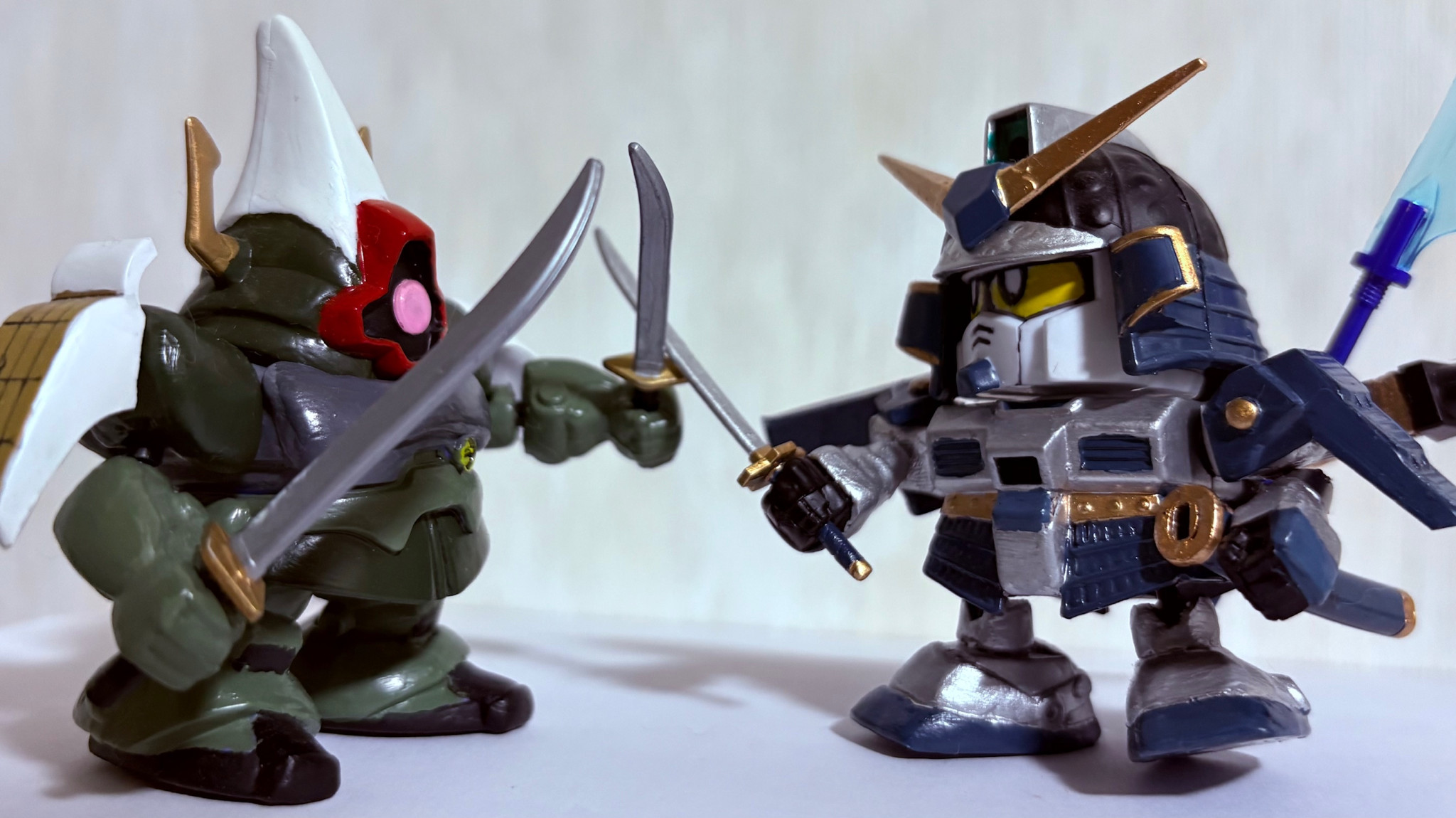 武者怒武と一騎打ち。思えばBB戦士のキットでボールジョイント改造をしていたおかげで旧キットでもやれるようになったワケか・・・。
