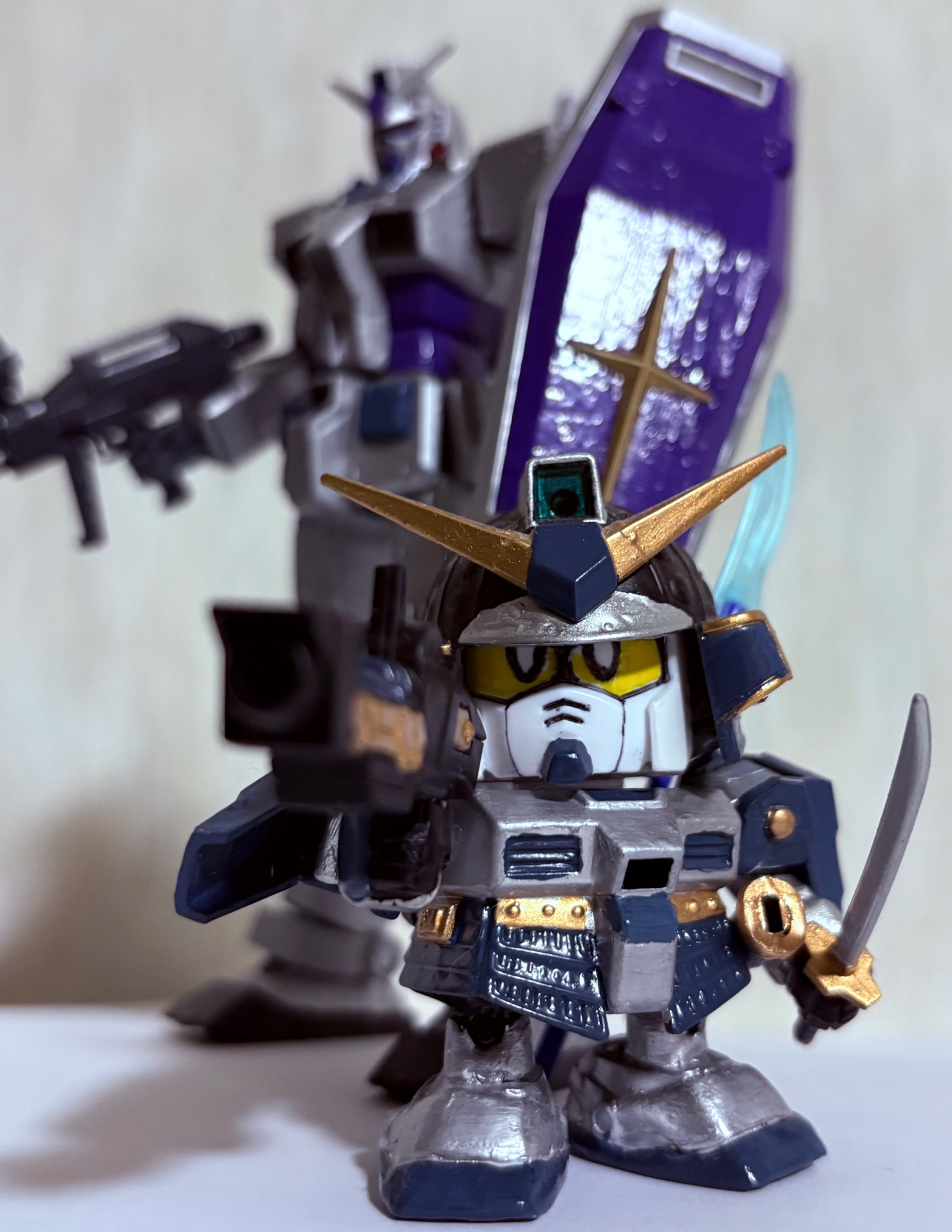 小説版ファーストでG-3に乗って〇〇したアムロがSD戦国伝の世界で「武者璽威参」に転生したイメージのショット。