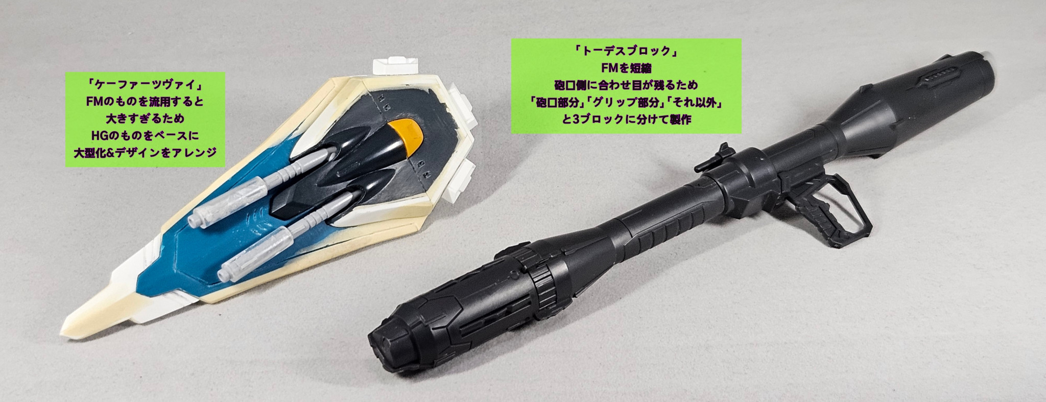 フルメカニクスのものではでかいしHGのものでは小さかったのでフルメカニクスのディテールをできるだけ参考にしつつHGをベースに大型化しました